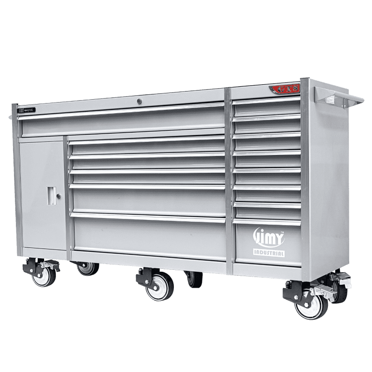 The 14 drawer mega mechanics tool kit from Jimy Tools offers a wide range of tools for the trade’s person. The kit consists of a 14 drawer heavy duty roller cabinet that has been powder coated with a tough industrial finish, 1.2mm thick steel, fully lockable with rear internal locking system and ball bearing slide drawers with twin slides on the deeper drawers. Included are metric 4mm – 32mm and SAE 5/32” – 1-1/4” sockets and a full complement of 1/4”, 3/8” and 1/2” drive socket accessories including ratchets, breaker bars, extensions bars from 50mm up to 900mm long plus metric and SAE impact sockets. There are ring open end ratchet and standard spanners in both metric and SAE, screwdrivers, pliers and even a 1/2” drive air impact wrench for the complete list of contents please check out the table below. With the high density foam drawer inserts you can easily see if you have left a tool on the job.