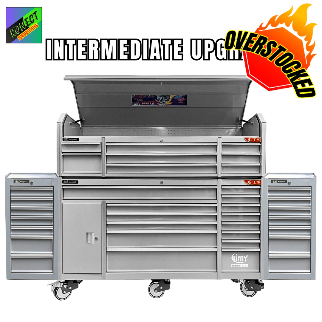 Jimy tool boxes are built to last! Tough industrial powder coating, 1.2mm gauge steel thickness, fully lockable & ball bearing slide rails on the drawers with twin slide rails on the deeper drawers.