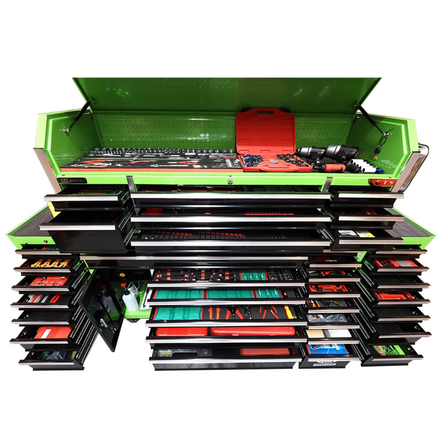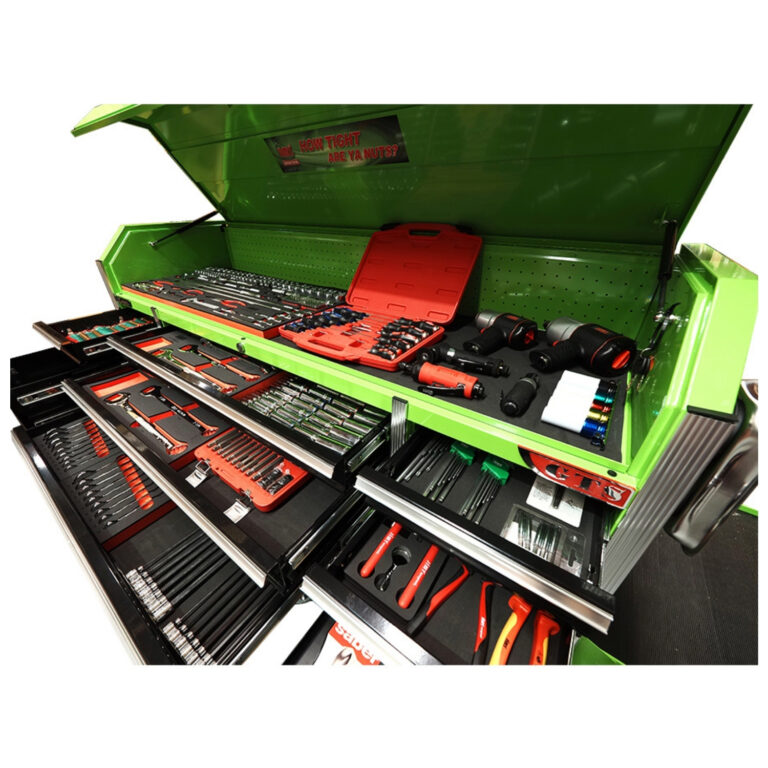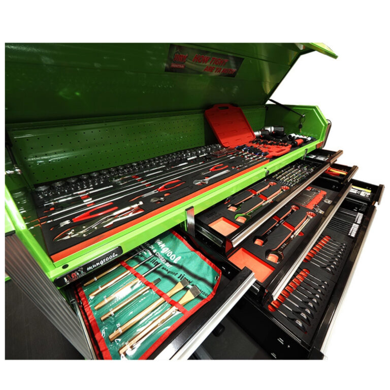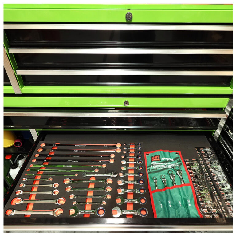 If you are in the professional trade and needing the ‘Beast’ of all mechanical tool kits, why not consider this 36 Drawer 72” ‘GTS’ Mammoth Mechanic Tool Kit from Jimy Tools. This tool kit is enormous with a full complement of sockets in ¼”, 3/8”, ½” & ¾” drives with all the extension bars ratchets and breaker bars to suit and what about that 900mm long ½” drive extension bar as well as all the spanners, pliers, and hand tools you could wish for check out the list of contents below. With the foam drawer inserts you can easily see if you have left a tool on the job.