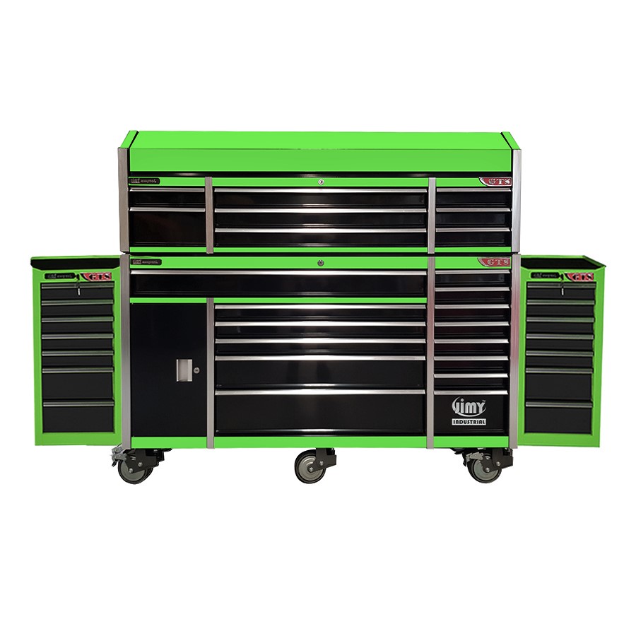 Jimy tool boxes are built to last! Tough industrial powder coating, 1.2mm gauge steel thickness, fully lockable & ball bearing slide rails on the drawers with twin slide rails on the deeper drawers.
