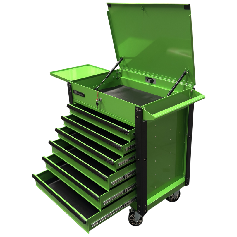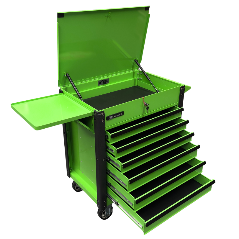 Jimy tool boxes are career spanning and built to last! Jimy’s diagnostic tool carts are the perfect middleman between your toolbox and your job! A necessary convenience for working in any workshop or even just for a small storage area at home. With a complete internal locking system, ensure complete security for your tools on the job.