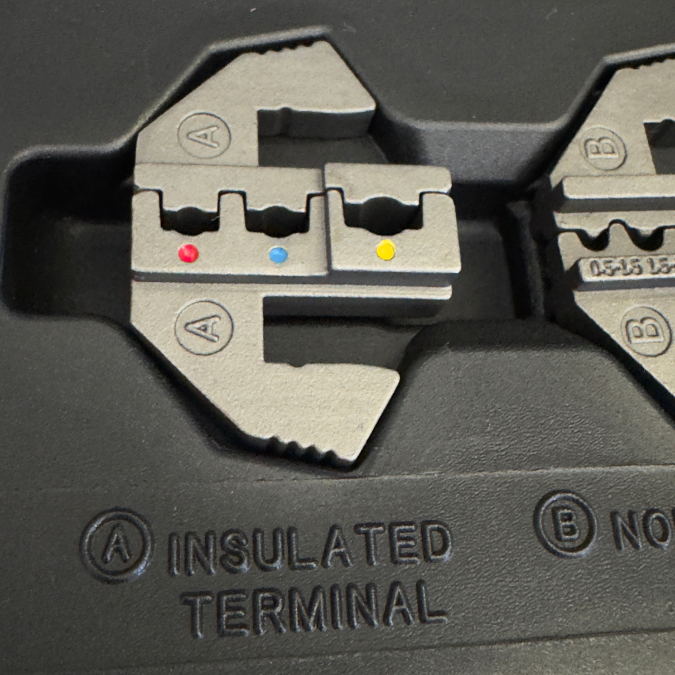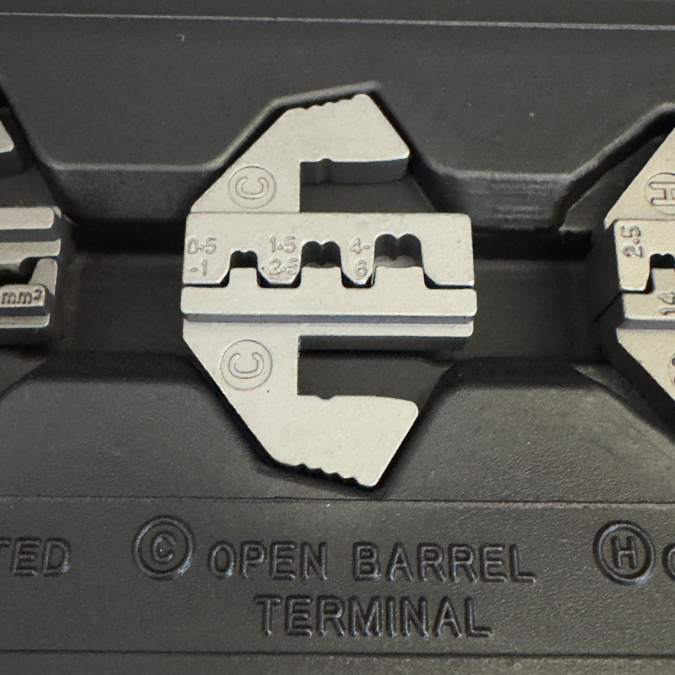 - Crimp dies manufactured from AISI 4140 hardened alloy steel for long service life