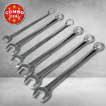 This 6 piece SAE ring open end spanner set includes sizes from 1-3/8” to 2” based on the American ANSI standard and style of spanner with a 15 degree ring and jaw offset. These spanners with thick walls and a longer handle give more leverage and extra torque. Manufactured from quality chrome Vanadium steel polished to a mirror finish for corrosion resistance and available in many different sizes. These ROE spanners are exceptionally strong and are covered by Jimy’s lifetime warranty it makes this an excellent quality set and great value for money.