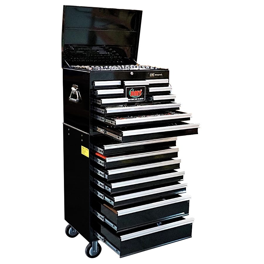 The 17 drawer Advanced Mechanic’s Tool Kit from Jimy Tools offers a wide range of tools for the tradesperson.