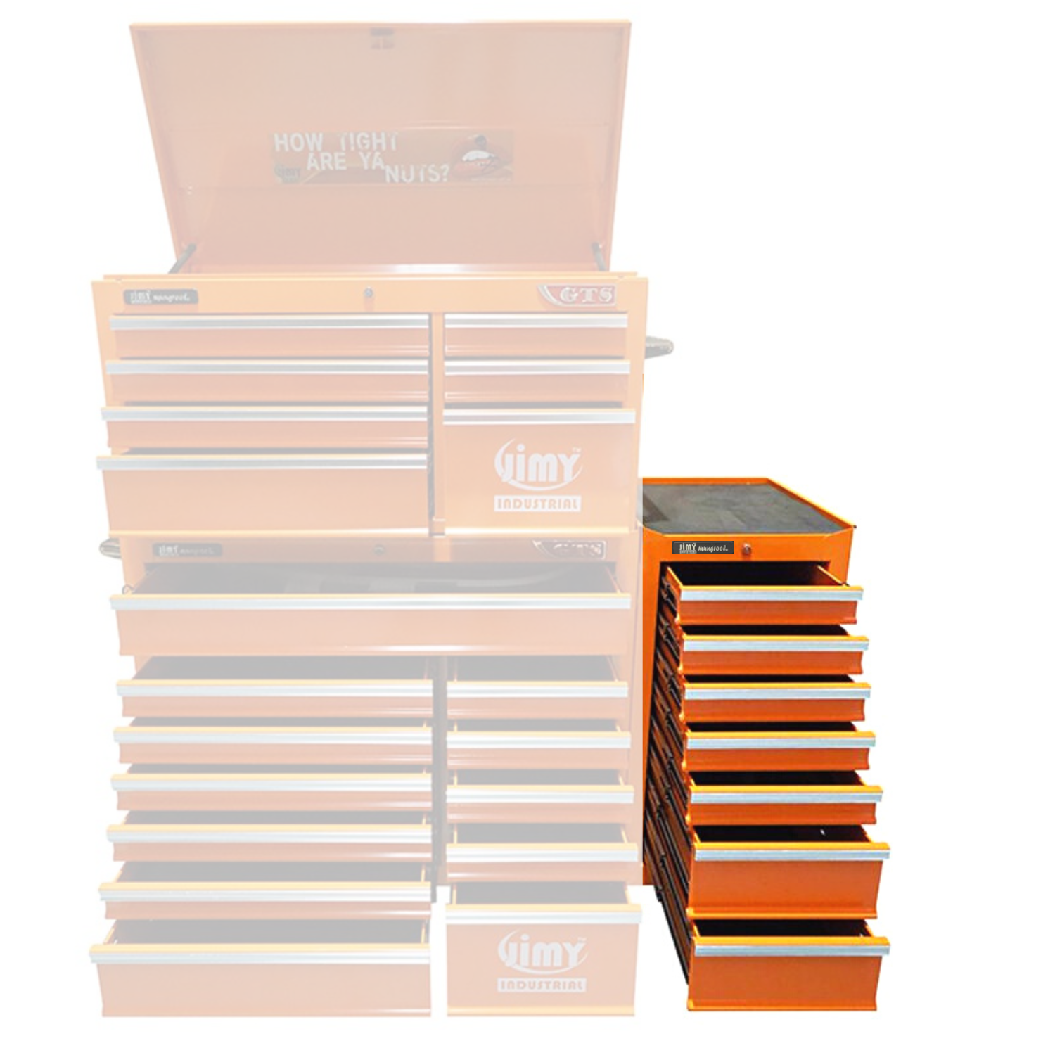 Jimy tool boxes are built to last with a tough industrial powder coating, 1.2mm thick steel, fully lockable with a rear internal locking system & heavy duty ball bearing slide drawers.