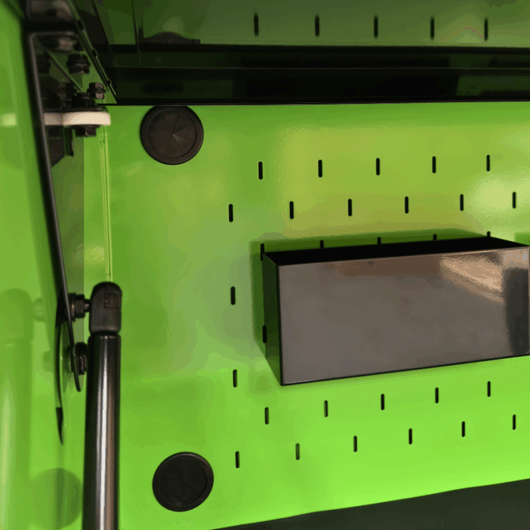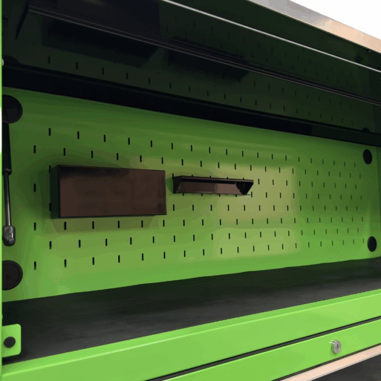 Our 72” Hutch is designed to perfectly suit Jimy’s 72” Roller Cabinets, giving you the ultimate top-end workspace. Enjoy plenty of storage with a bulky bench area, integrated screwdriver holder, can organiser and a full back-panel pegboard for easy tool access.