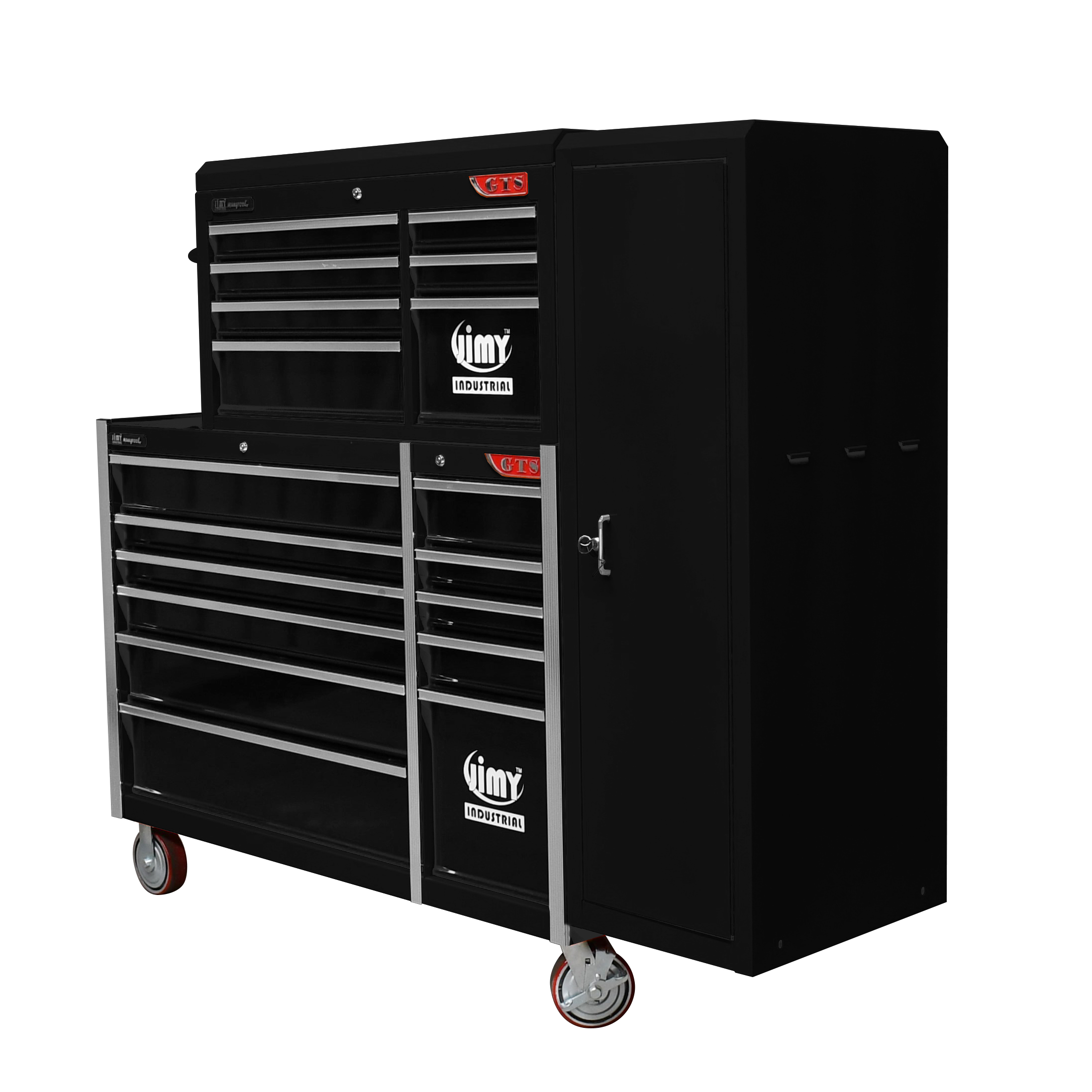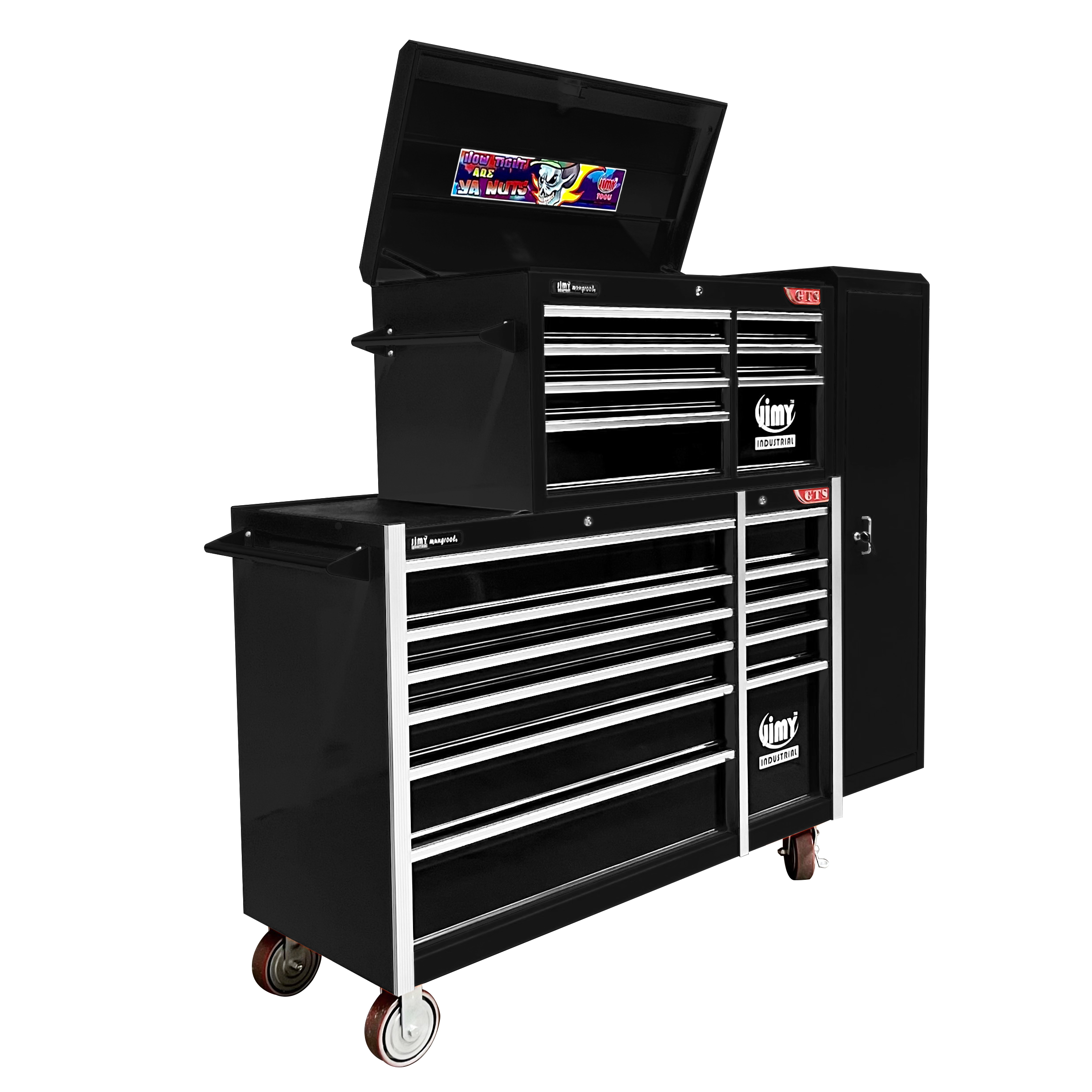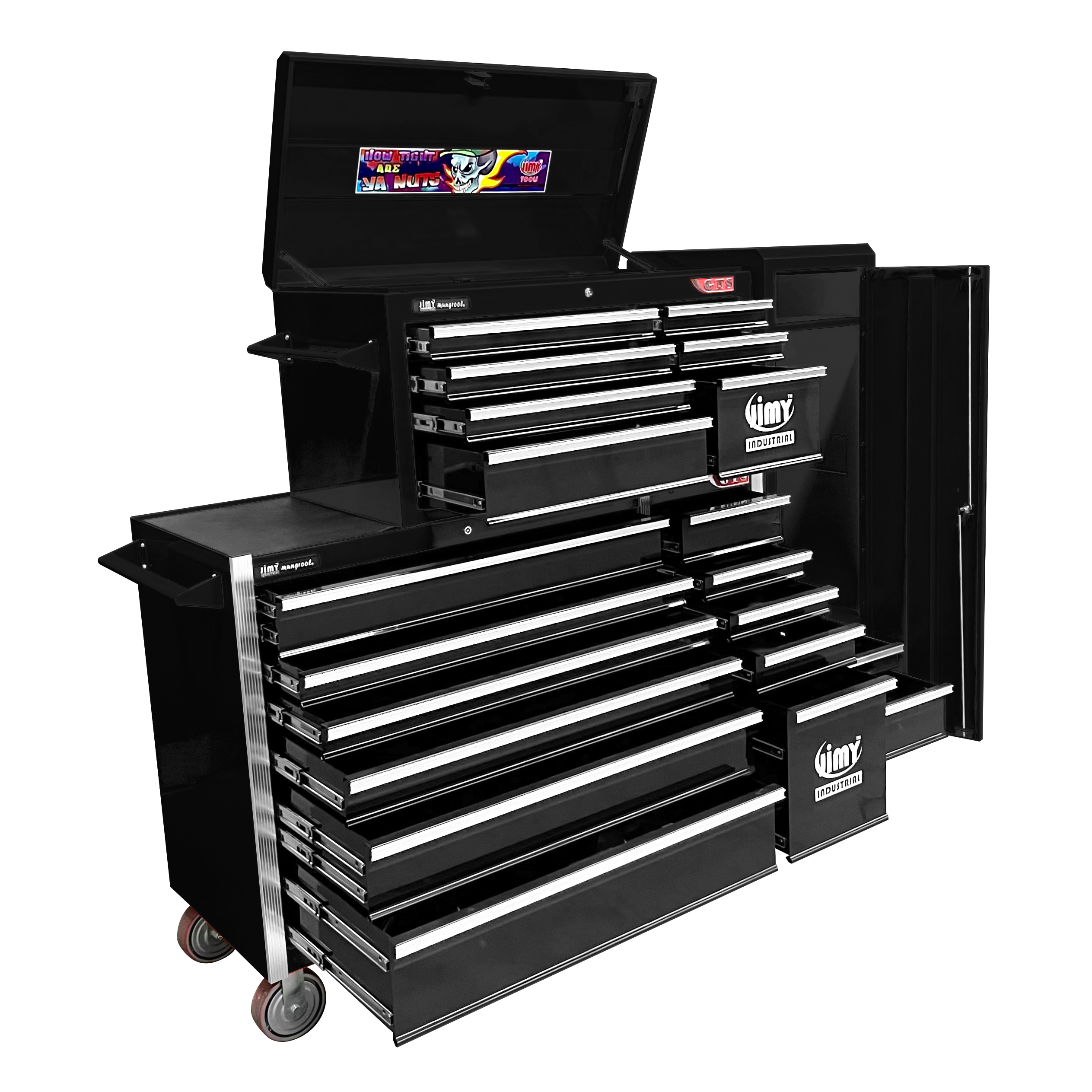 Jimy toolboxes are built to last! Tough industrial powder coating, 1.2mm gauge steel thickness, fully lockable & ball bearing slide rails on the drawers with twin slide rails on the deeper drawers.