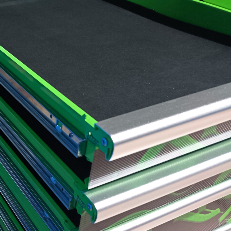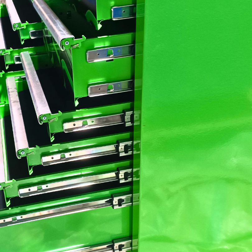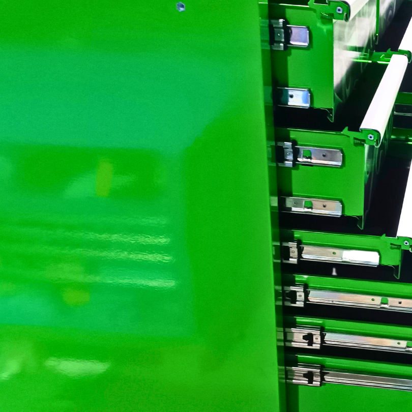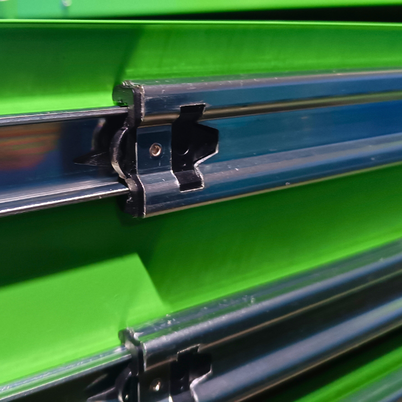 Jimy tool boxes are built to last! Tough industrial powder coating, 1.2mm gauge steel thickness, fully lockable & ball bearing slide rails on the drawers with twin slide rails on the deeper drawers. Drawers fitted with Click-lock mechanism.