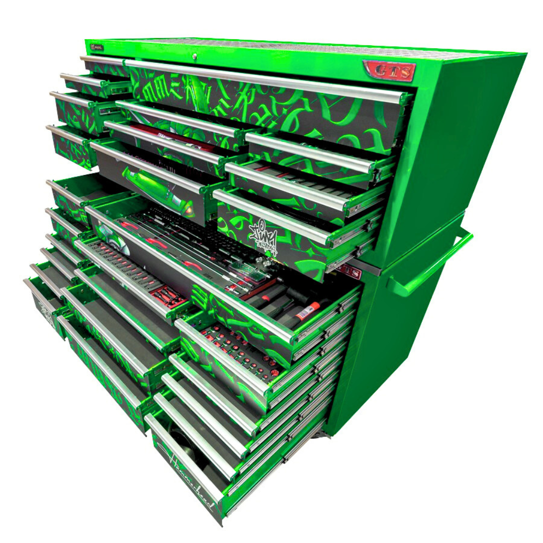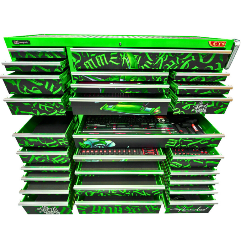 If you are in the professional trade and needing the ‘Mother’ of all mechanical tool kits, why not consider this Advanced 28 Drawer 72” ‘GTS’ Hammerhead Tool Kit from Jimy Tools. This tool kit is enormous with a full complement of sockets in ¼”, 3/8”, ½” & ¾” drives with all the extension bars ratchets and breaker bars to suit and what about that 900mm long ½” drive extension bar as well as all the spanners, pliers and hand tools you could wish for check out the list of contents below. With the foam drawer inserts you can easily see if you have left a tool on the job.