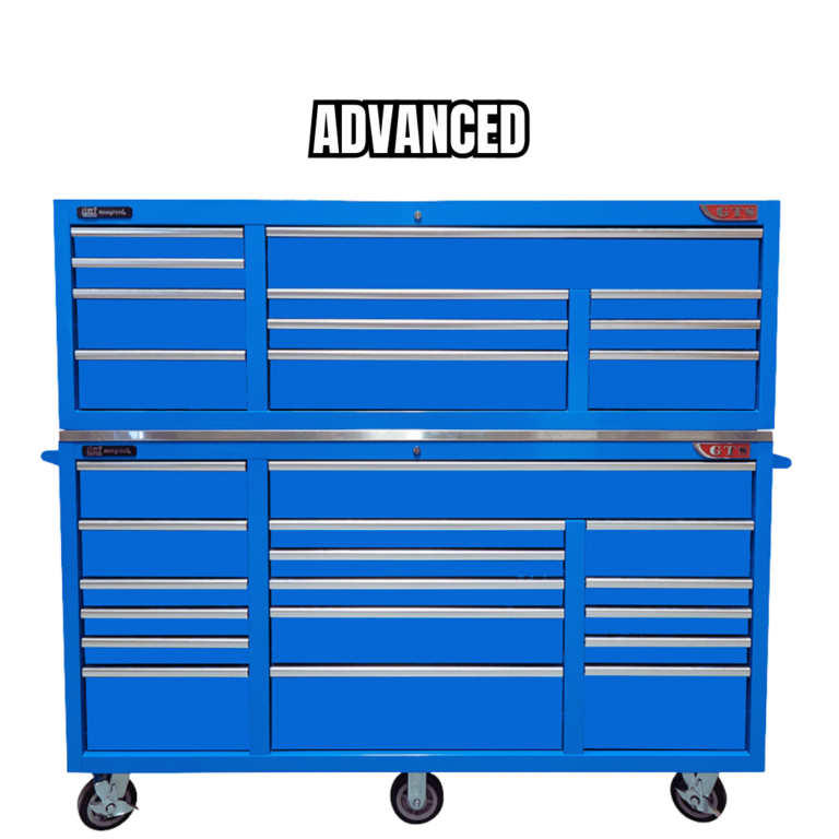 Jimy tool boxes are built to last! Tough industrial powder coating, 1.2mm gauge steel thickness, fully lockable & ball bearing slide rails on the drawers with twin slide rails on the deeper drawers. Drawers fitted with Click-lock mechanism.