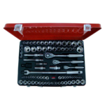This 79 piece set contains 40 metric 6 and 12 point sockets ranging in size from 4mm up to 32mm, 29 SAE 6 and 12 point sockets from 5/32” up to 1-1/4” three quality ratchets in 1/4”, 3/8” and 1/2” drive, three extensions, breaker bar, two spark plug sockets and an impact universal all packaged in a metal case with a plastic moulded insert.