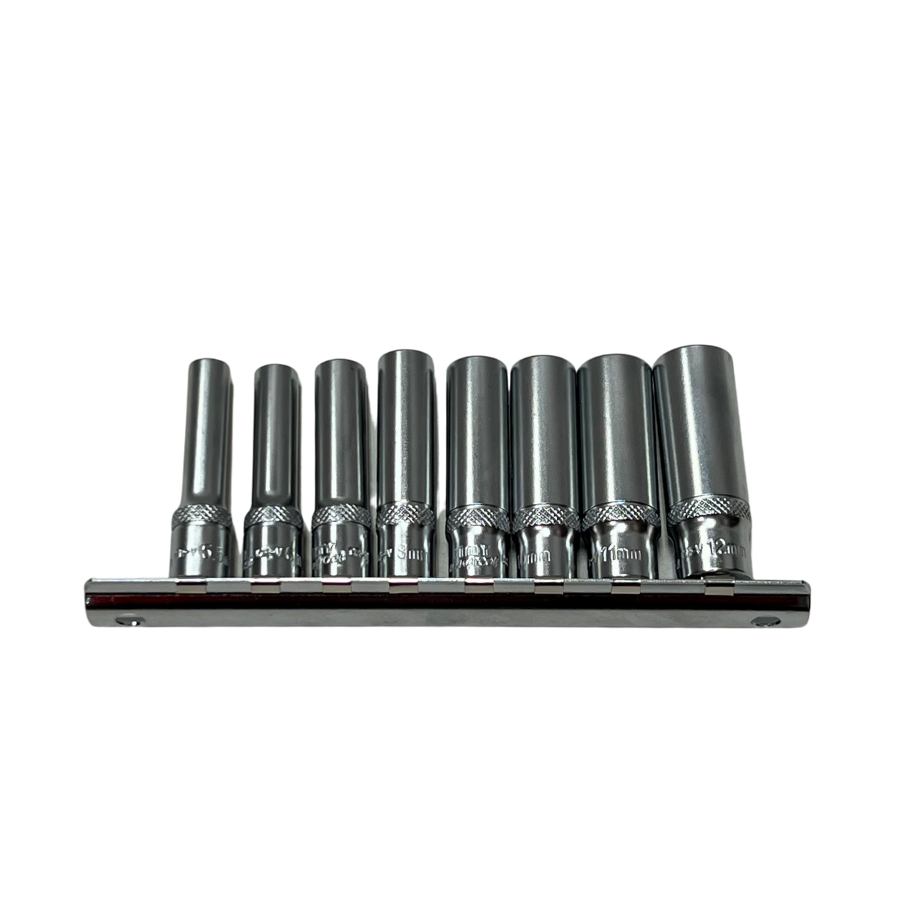 PRODUCT SPECIFICATIONS: Sizes: 5.5 ,6, 7, 8, 9, 10, 11 and 12mm Deep sockets Chrome Vanadium (Cr-V) steel Supplied with a socket rail WHY BUY A JIMY TOOL? Jimy Tools has mastered the fine balance between high quality tools and competitive prices. With Jimy Tools, you get both a great tool and a… Read more
