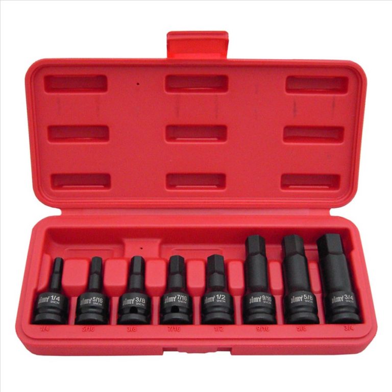This Jimy Tools heavy duty 8 piece in-hex impact socket set is built to take a pounding! The one piece design means these in-hex sockets can handle the impact and torque from 1/2” drive air impact wrenches. Made from AISI 8660 steel, drop-forged impact sockets are hardened and tempered for strength with a phosphate finish for greater corrosion resistance. Two lengths of impact sockets in the set: 60mm & 78mm.