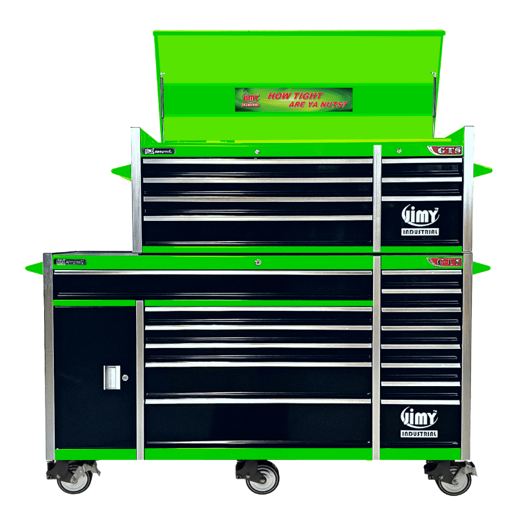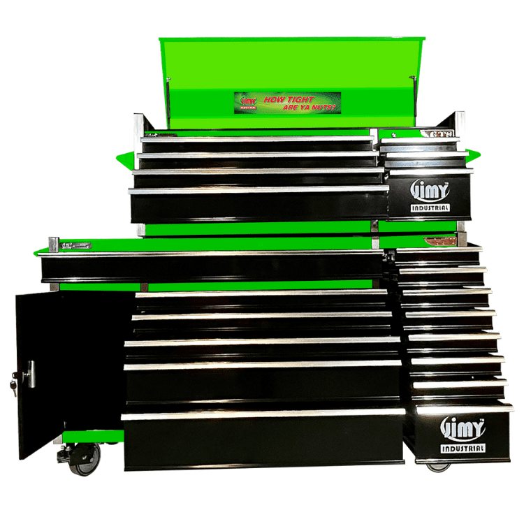 If you are in the professional trade and needing the ‘Mother’ of all mechanical tool kits, why not consider this 21 Drawer 72” ‘GTS’ Monster Mechanic Tool Kit from Jimy Tools. This tool kit is enormous with a full complement of sockets in ¼”, 3/8”, ½” & ¾” drives with all the extension bars ratchets and breaker bars to suit and what about that 900mm long ½” drive extension bar as well as all the spanners, pliers and hand tools you could wish for check out the list of contents below. With the foam drawer inserts you can easily see if you have left a tool on the job. Jimy tool boxes are built to last! Tough industrial powder coating, 1.2mm gauge steel thickness, fully lockable & ball bearing slide rails on the drawers with twin slide rails on the deeper drawers.
