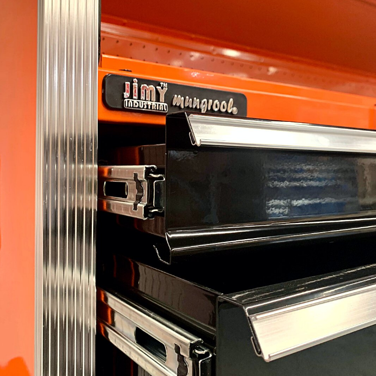 Jimy tool boxes are built to last! Tough industrial powder coating, 1.2mm gauge steel thickness, fully lockable & ball bearing slide rails on the drawers with twin slide rails on the deeper drawers.