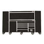 Check out the full list of contents below. With the foam drawer inserts you can easily see if you have left a tool on the job. The 76” folding top chest above the 76” roller cabinet is perfect for storing your diagnostic tools and technical manuals or you could even set up an entertainment unit in the space. With the addition of the 20” width full height side cabinet with 3 shelves, storage solutions become unlimited.