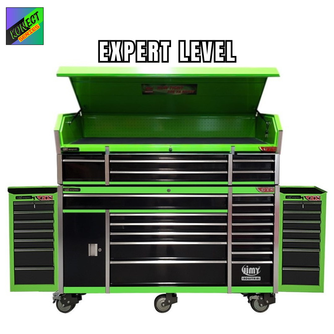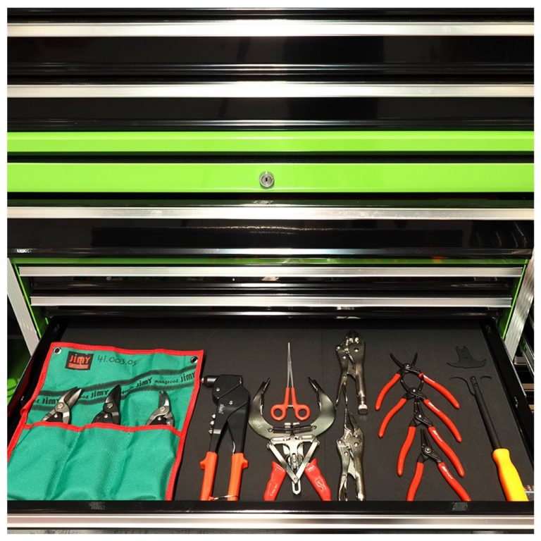 Jimy tool boxes are built to last! Tough industrial powder coating, 1.2mm gauge steel thickness, fully lockable & ball bearing slide rails on the drawers with twin slide rails on the deeper drawers.