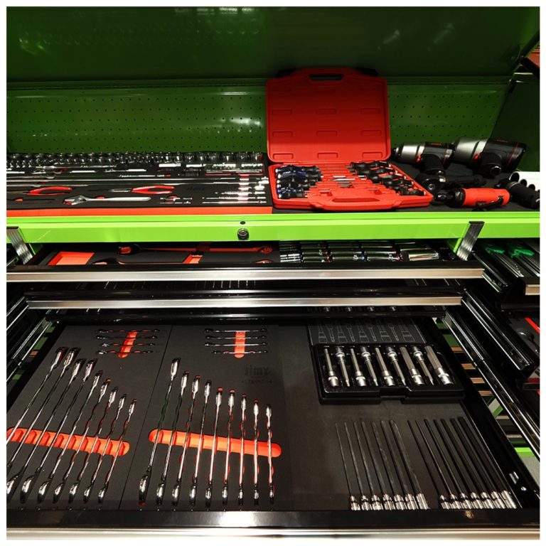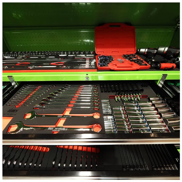 If you are in the professional trade and needing the ‘Mother’ of all mechanical tool kits, why not consider this 36 Drawer 72” ‘GTS’ Monster Mechanic Tool Kit from Jimy Tools. This tool kit is enormous with a full complement of sockets in ¼”, 3/8”, ½” & ¾” drives with all the extension bars ratchets and breaker bars to suit and what about that 900mm long ½” drive extension bar as well as all the spanners, pliers and hand tools you could wish for check out the list of contents below. With the foam drawer inserts you can easily see if you have left a tool on the job.