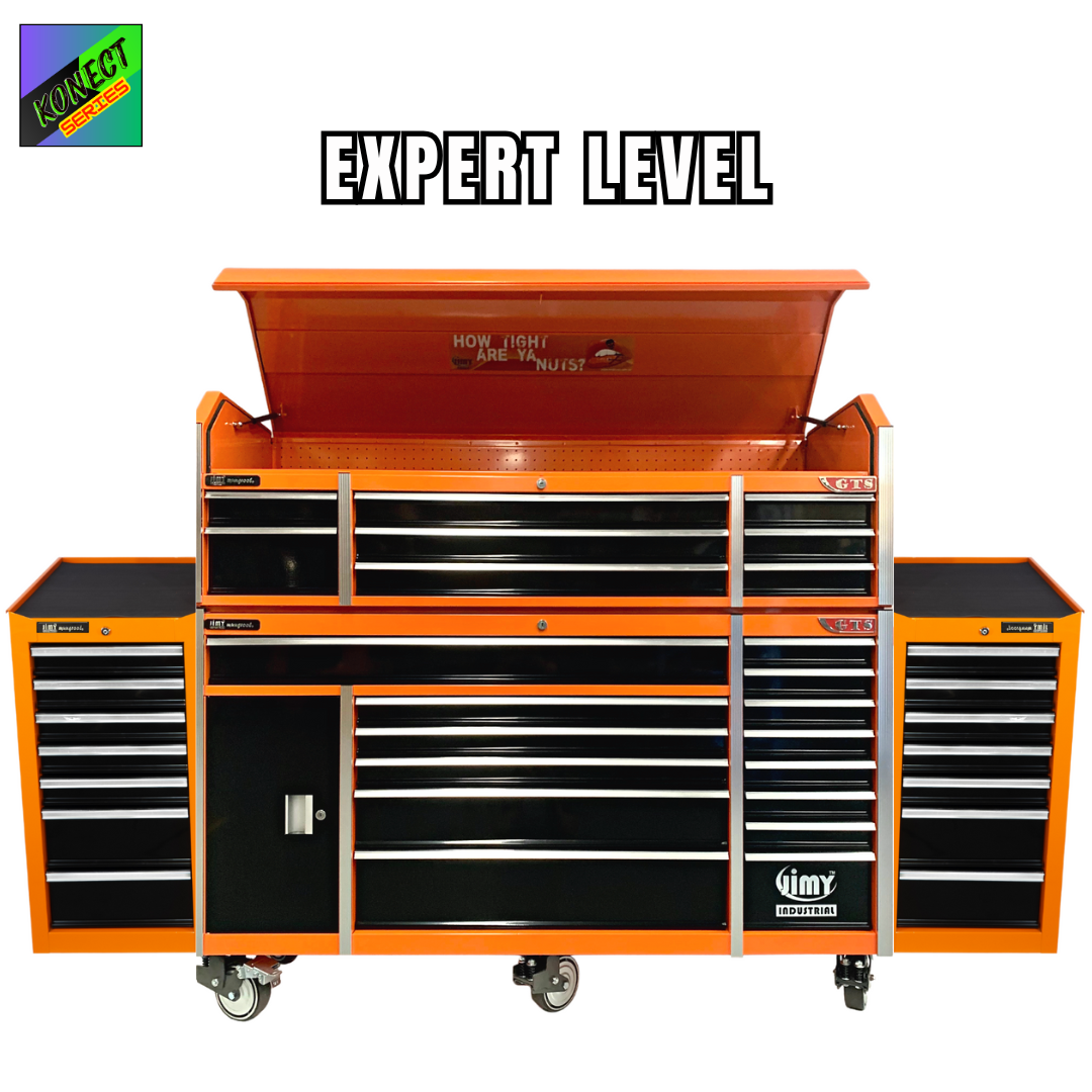 Jimy tool boxes are built to last! Tough industrial powder coating, 1.2mm gauge steel thickness, fully lockable & ball bearing slide rails on the drawers with twin slide rails on the deeper drawers.