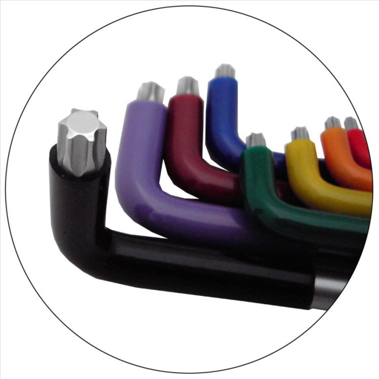 The Jimy Tools 9 piece extra long shank tamper proof and standard Torx® key set includes sizes from T10 up to T50 and have a tamper proof Torx® end on the long shank and a standard Torx® on the short end of the keys. The keys are made from high quality S2 steel with a mirror satin finish and are colour coded for easy identification.
