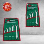 This Jimy Tools 9 piece SAE flare nut set has a standard open end ring spanner at each end of the spanner. Flare nut spanners are used to remove or replace fuel, hydraulic or brake line fittings so the risk of rounding off the fittings is reduced. This 9 piece set is manufactured from quality chrome vanadium steel that is polished to a mirror finish and all wrapped up in Jimy’s own ‘Rip Stop’ canvas spanner roll makes this an excellent quality set and value for money.