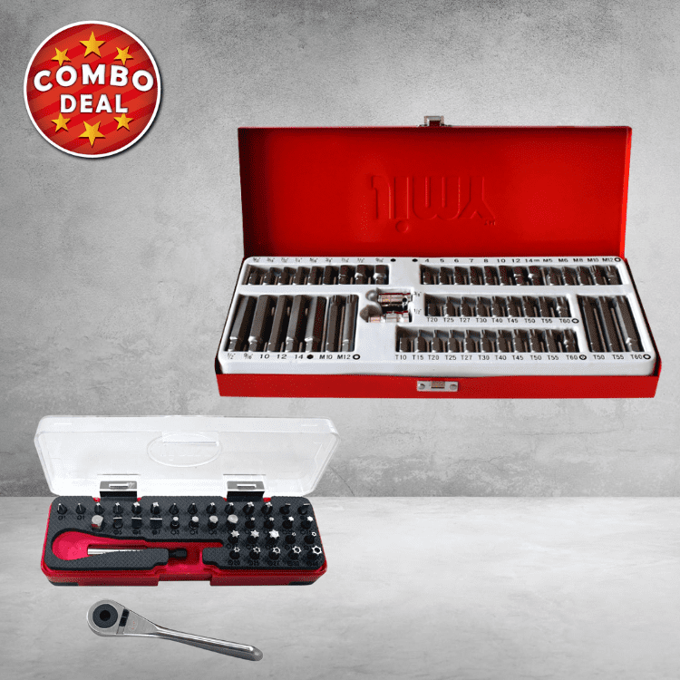 Every mechanic and handyman knows that small bits are easy to lose, and can be frustrating to have to buy and store them separately. The Jimy Tools 54 Piece Bit Set gives you all of the most common hex, star, spline, and tamperproof bits, all in one handy case. You won’t have to go rummaging through your tool chest to find the right bit; they are all here in this versatile Jimy Tools Bit Set.