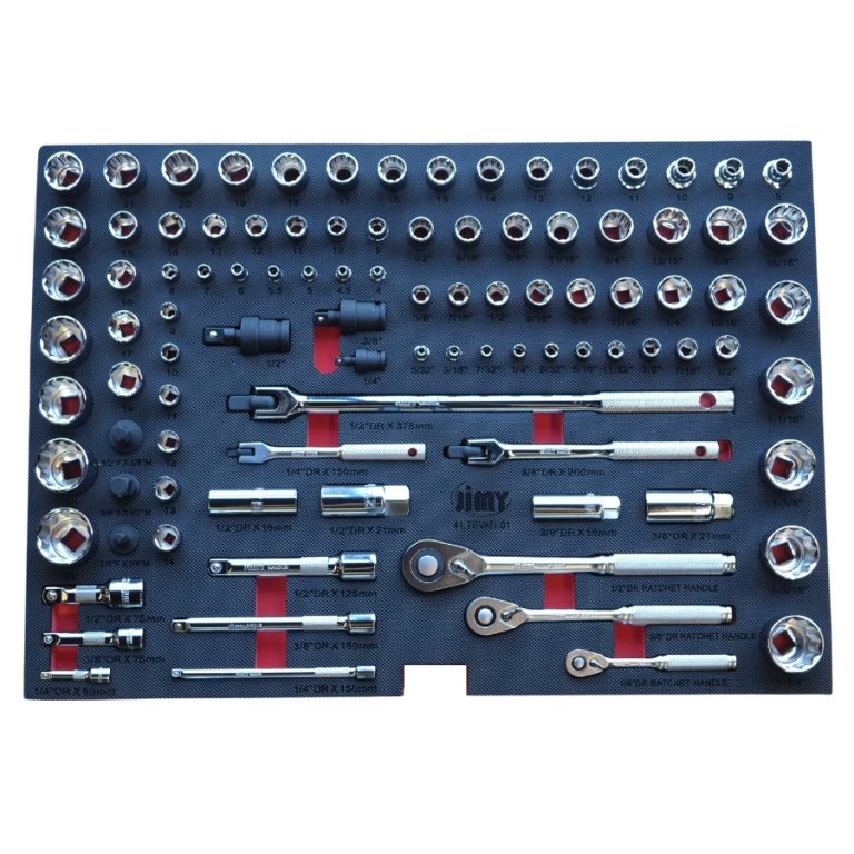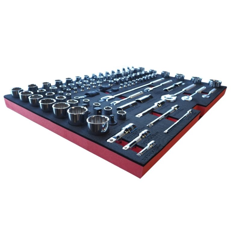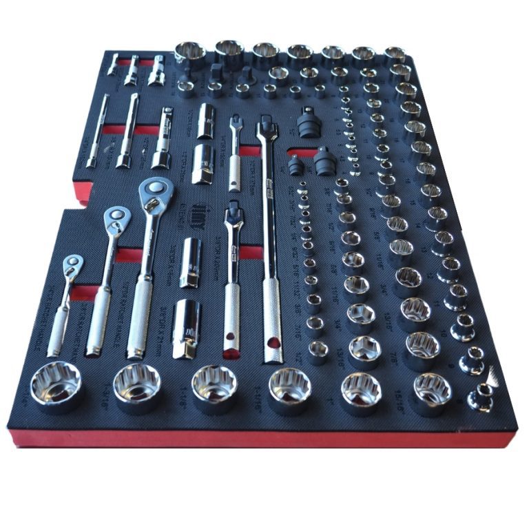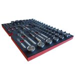 PRODUCT SPECIFICATIONS: Dimensions: 59 x 43.5 x 5cmContents: ¼” Drive 6pt Sockets – 4-14mm & 5/32-12” 3/8” Drive 12pt Sockets – 9-19mm & 3/8-13/16” ½” Drive 12pt Sockets – 8-32mm & ½”-1-1/4”