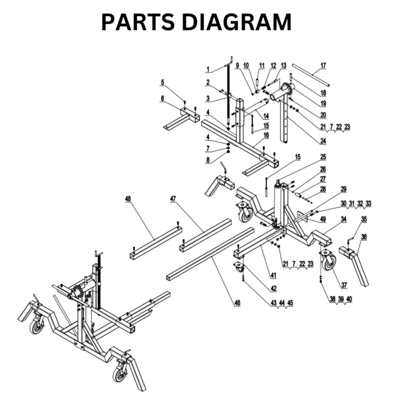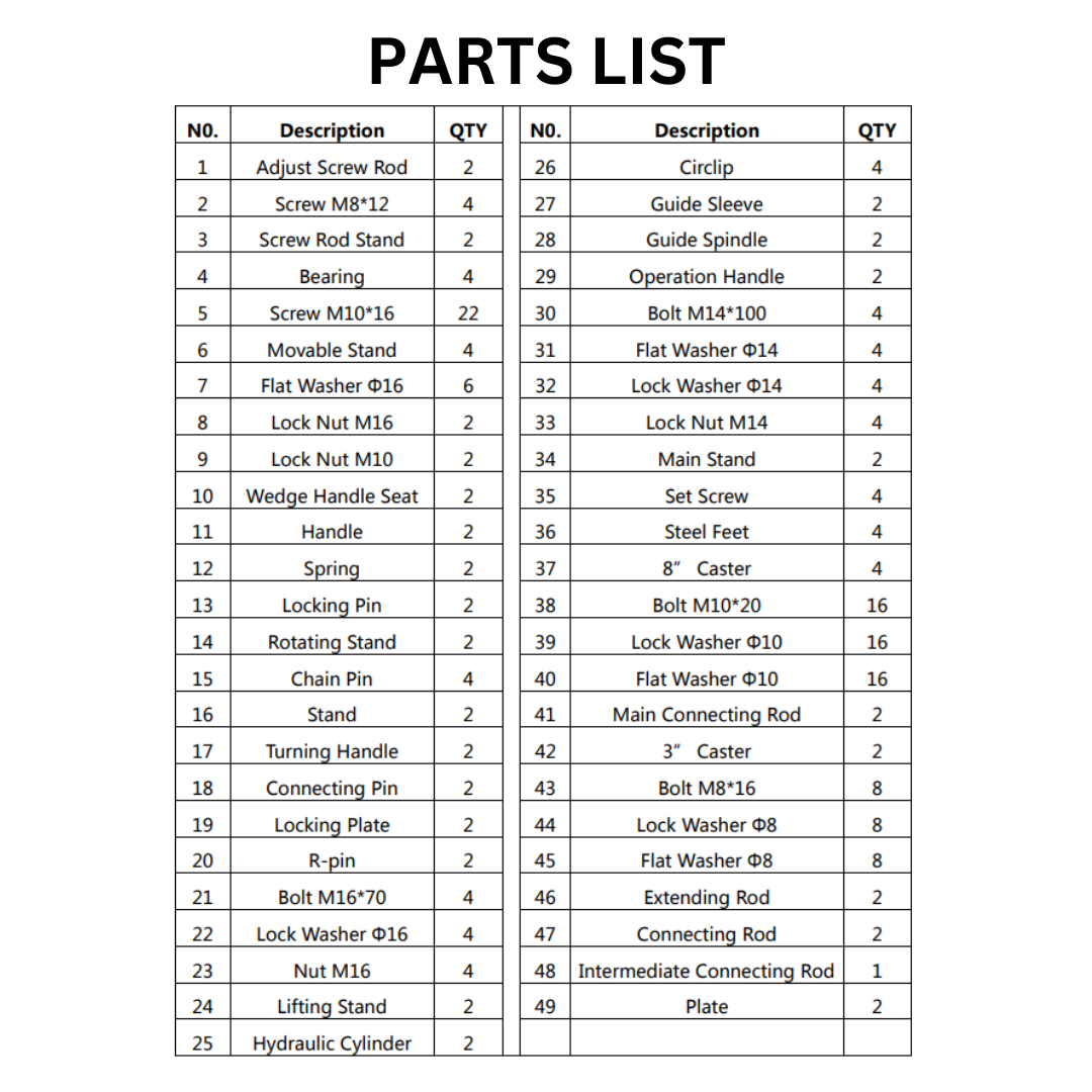 - 5” high casters wheels and 2” wide (2 fixed, 2 locking swivel) provide easy mobility when fully loaded