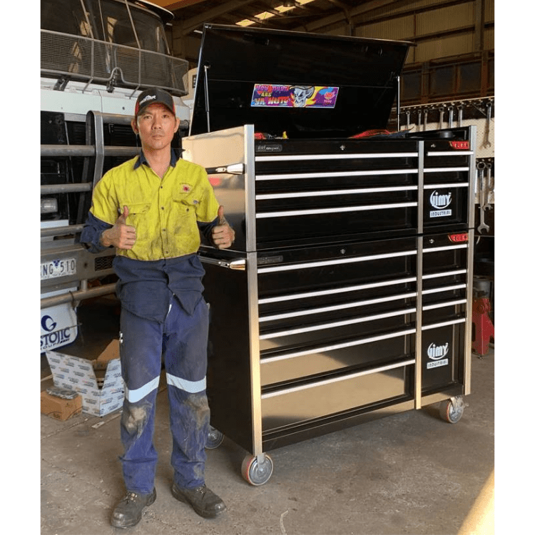 Jimy tool boxes are built to last! Tough industrial powder coating, 1.2mm gauge steel thickness, fully lockable & ball bearing slide rails on the drawers with twin slide rails on the deeper drawers.