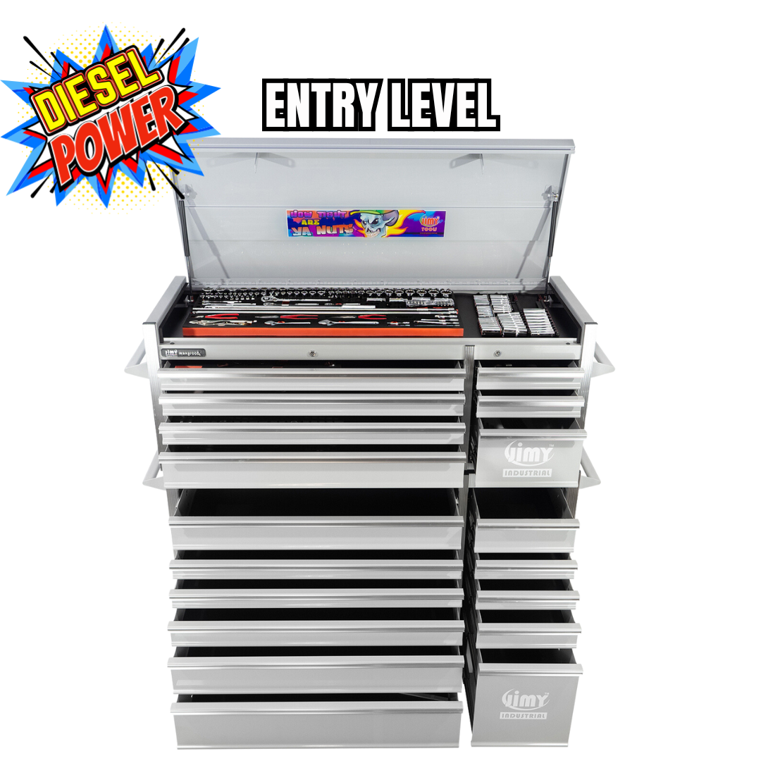 Then why not consider this Entry Level 18 Drawer 56” Introductory ‘Diesel Power’ Tool Kit from Jimy Tools.