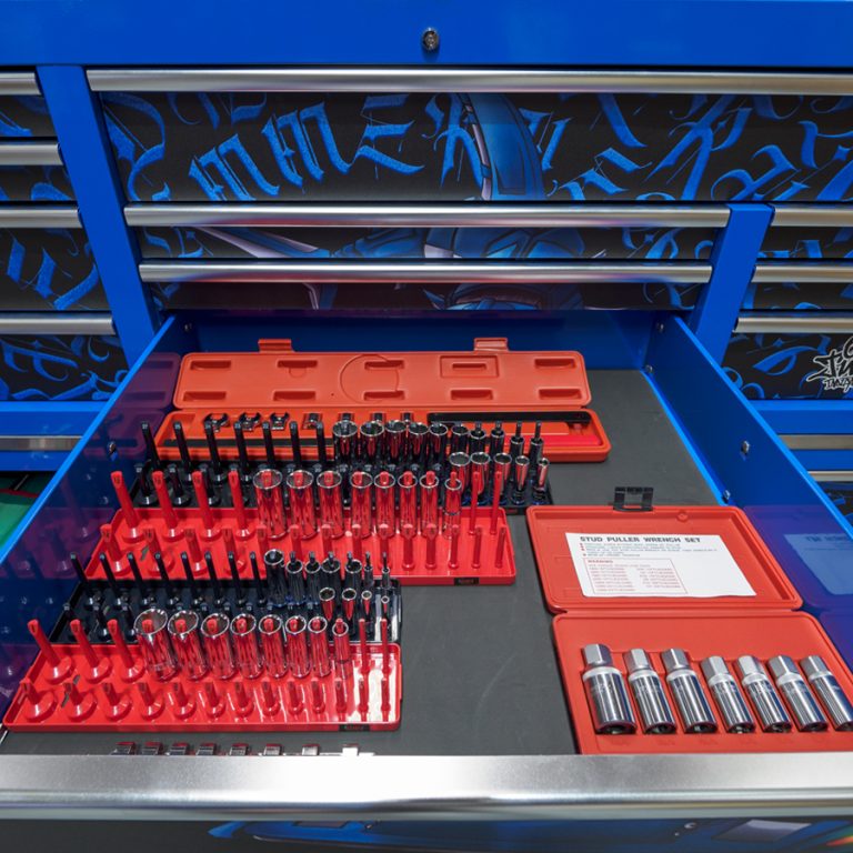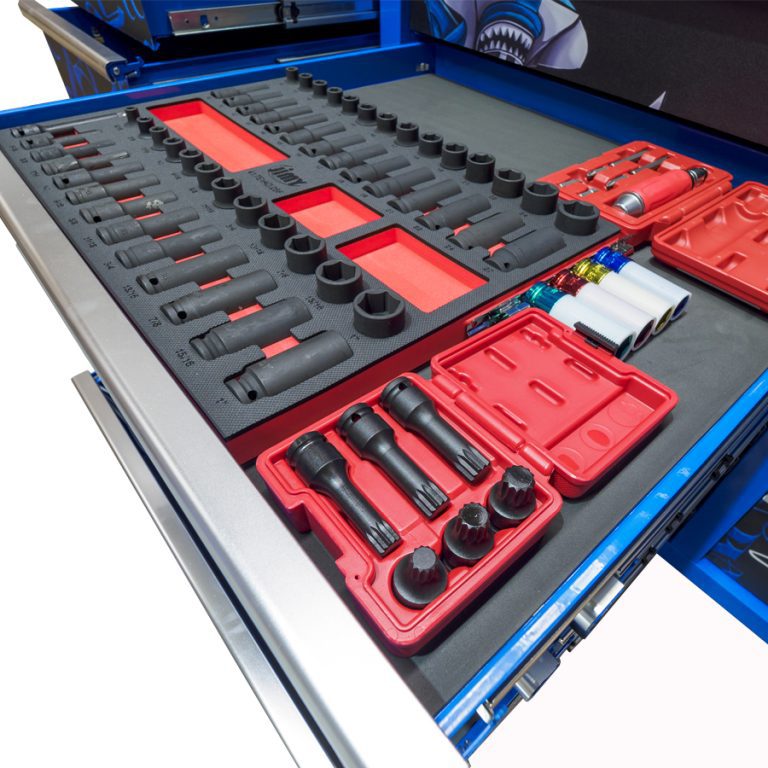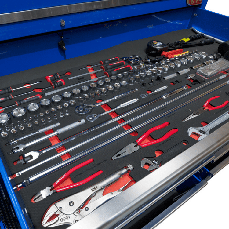 If you are in the professional trade and needing the ‘Mother’ of all mechanical tool kits, why not consider this Expert Level 17 Drawer 72” ‘GTS’ Hammerhead Tool Kit from Jimy Tools. This tool kit is enormous with a full complement of sockets in ¼”, 3/8”, ½” & ¾” drives with all the extension bars ratchets and breaker bars to suit and what about that 900mm long ½” drive extension bar as well as all the spanners, pliers and hand tools you could wish for check out the list of contents below. With the foam drawer inserts you can easily see if you have left a tool on the job.