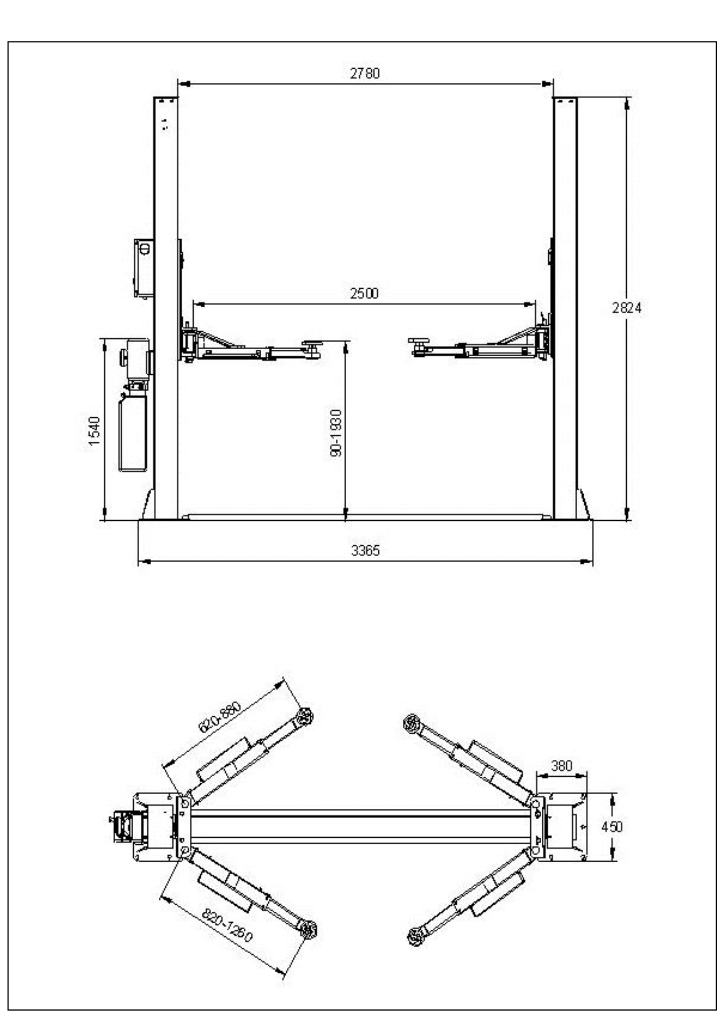 HAMMERHEAD 4.0T BASE FRAME TWO POST LIFT HOIST