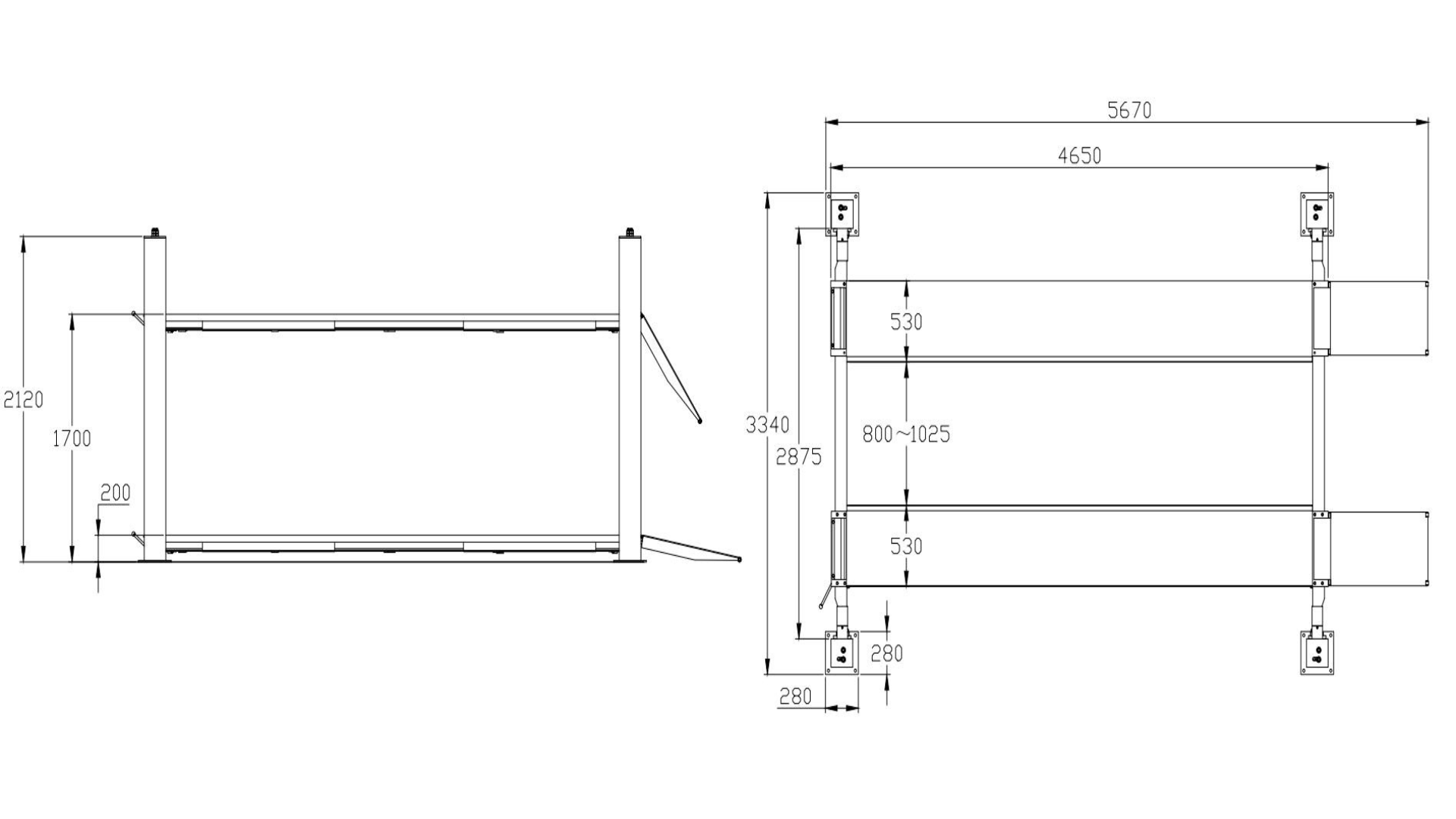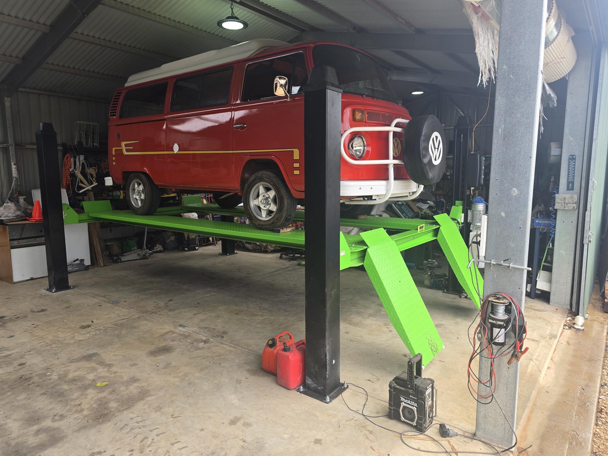- 4 post hoist with all bolts, cables, lines and fixings