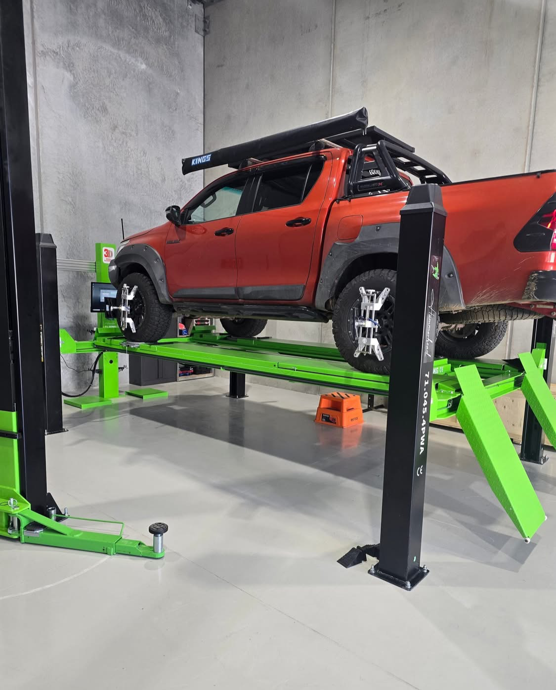 Designed for accurate and efficient wheel alignments, this heavy-duty hoist boasts a 4,500 kg (4.5 ton / 9,900 lbs) lifting capacity, making it suitable for a wide range of vehicles, including sedans, SUVs, 4WDs, and light commercial trucks. Whether you’re performing suspension work, alignment checks, or underbody inspections, this hoist is built to deliver.