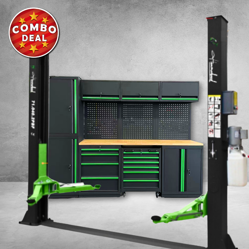 The Jimy Tools Garage Series Workstation is a premium storage and organisation solution designed to elevate your home garage or shed. Built with a full welded steel structure and finished in a scratch and stain-resistant black powder coat with green trim, this workstation is as tough as it is stylish.