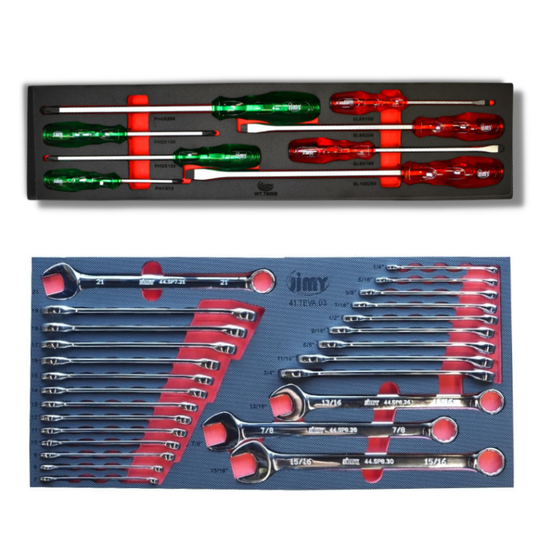 The Introductory Tool Kit from Jimy Tools is perfect for the professional Tradesman or Apprentice who wants the biggest & best value for their money. What a good place to start if you’re new to the mechanical trades, or an old hand, this tool kit makes sense containing a full complement of sockets in 1/4” 3/8”,1/2” drives with all the extension bars ratchets and breaker bars to suit and what about that 900mm long extension bars. With the foam drawer inserts you can easily see if you have left a tool on the job. Jimy tool boxes are built to last! Tough industrial powder coating, 1.2mm gauge steel thickness, fully lockable & ball bearing slide rails on the drawers with twin slide rails on the deeper drawers.