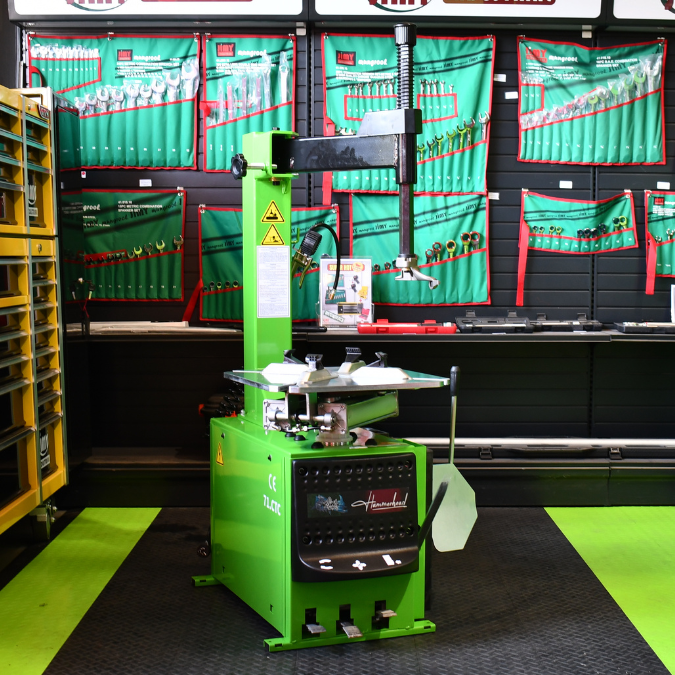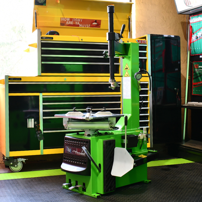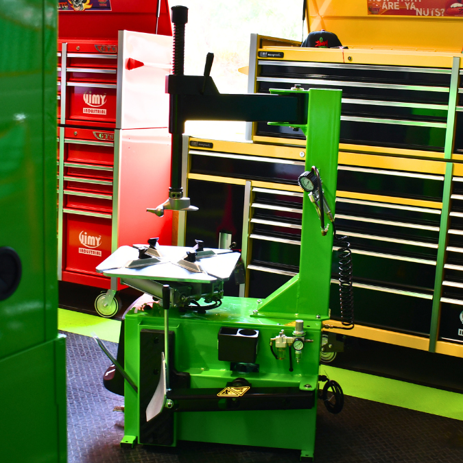 Car Tyre Changer up to a 24” wheel with semi-automatic side swing arm.
