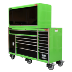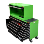 PRODUCT SUMMARY:   The 14 drawer “Intermediate” hutch tool workshop from Jimy Tools offers a great range of tools for the professional mechanic. The kit consists of a hutch top box and an 11-drawer roller cabinet, all have been powder coated with a tough industrial finish, 1.2mm thick steel, fully lockable with rear internal locking… Read more