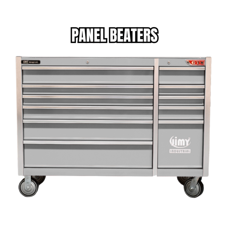 This 11 drawer Panel Beaters tool kit from Jimy Tools is the perfect place to start if your new to the mechanical Panel Beating trade. This tool kit consists of a 11 drawer roller cabinet with a full complement of sockets in 1/4” 3/8” & 1/2” square drives with all the extension bars, ratchets and breaker bars to suit and what about that 900mm extension. Also included are ROE spanners in metric and SAE, pliers, screwdrivers, Allen keys etc. check out the full list of contents below.