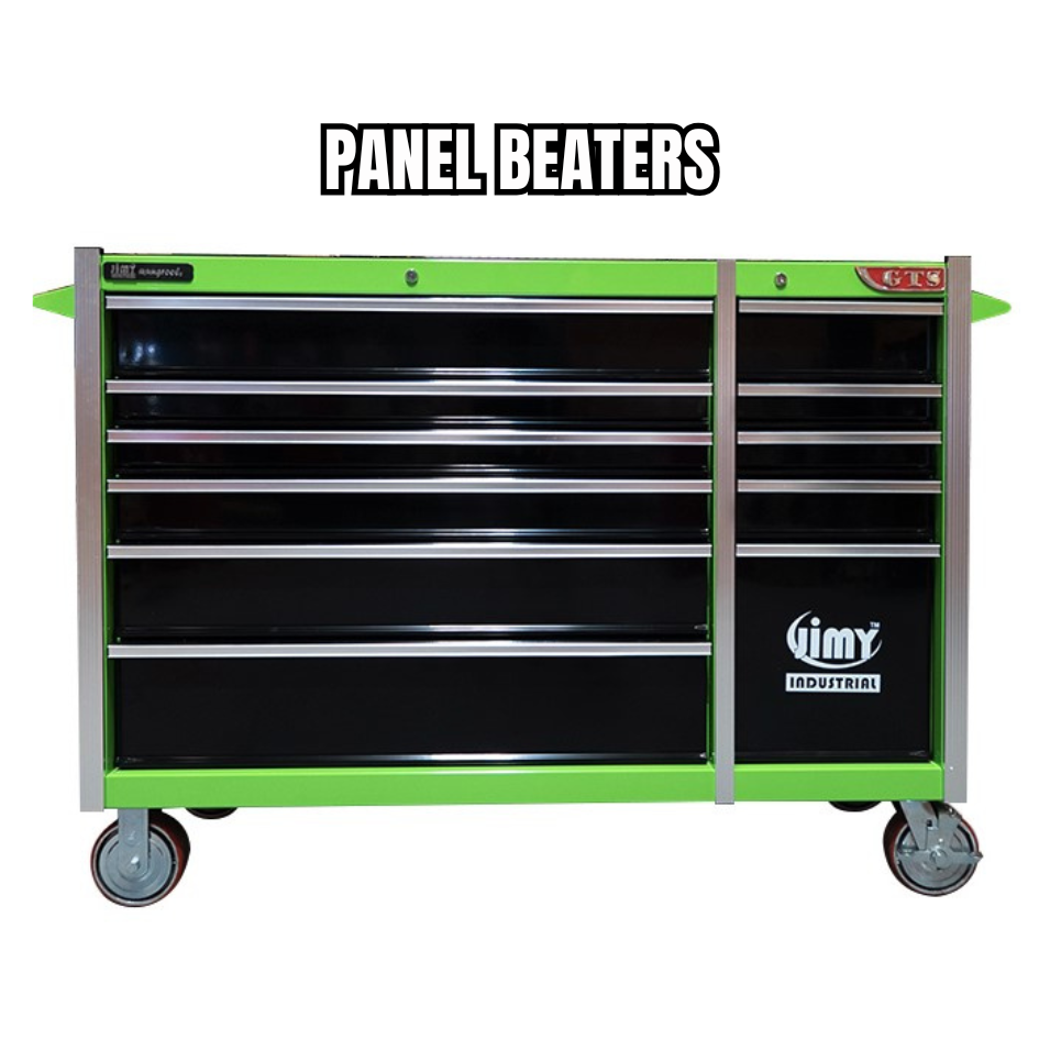 This 11 drawer Panel Beaters tool kit from Jimy Tools is the perfect place to start if your new to the mechanical Panel Beating trade. This tool kit consists of a 11 drawer roller cabinet with a full complement of sockets in 1/4” 3/8” & 1/2” square drives with all the extension bars, ratchets and breaker bars to suit and what about that 900mm extension. Also included are ROE spanners in metric and SAE, pliers, screwdrivers, Allen keys etc. check out the full list of contents below.