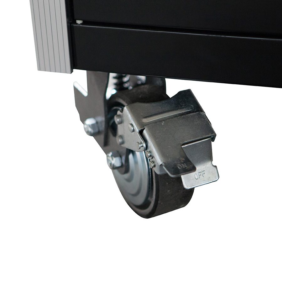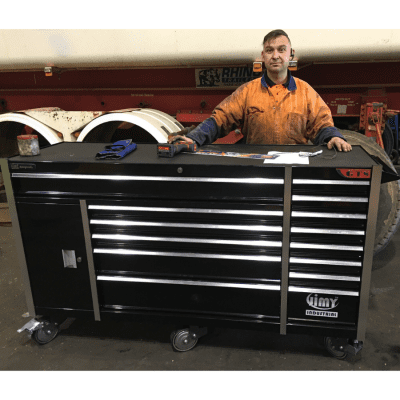 Jimy tool boxes are built to last with a tough industrial powder coating, 1.0mm thick steel, fully lockable with a rear internal locking system, dual gas strut system for lid & ball bearing slide drawers with twin slides on the deeper drawers.