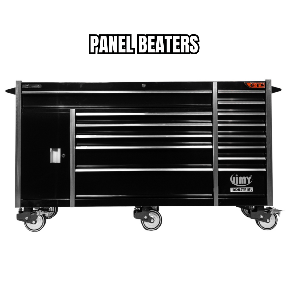 This 14 drawer Panel Beaters tool kit from Jimy Tools is the perfect place to start if your new to the mechanical Panel Beating trade. This tool kit consists of a 14 drawer roller cabinet with a full complement of sockets in 1/4” 3/8” & 1/2” square drives with all the extension bars, ratchets and breaker bars to suit and what about that 900mm extension. Also included are ROE spanners in metric and SAE, pliers, screwdrivers, Allen keys etc. check out the full list of contents below.