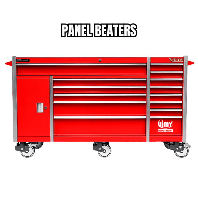 This 14 drawer Panel Beaters tool kit from Jimy Tools is the perfect place to start if your new to the mechanical Panel Beating trade. This tool kit consists of a 14 drawer roller cabinet with a full complement of sockets in 1/4” 3/8” & 1/2” square drives with all the extension bars, ratchets and breaker bars to suit and what about that 900mm extension. Also included are ROE spanners in metric and SAE, pliers, screwdrivers, Allen keys etc. check out the full list of contents below.