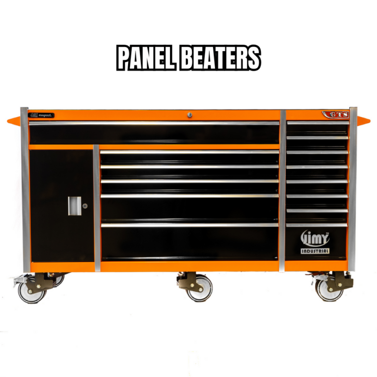 This 14 drawer Panel Beaters tool kit from Jimy Tools is the perfect place to start if your new to the mechanical Panel Beating trade. This tool kit consists of a 14 drawer roller cabinet with a full complement of sockets in 1/4” 3/8” & 1/2” square drives with all the extension bars, ratchets and breaker bars to suit and what about that 900mm extension. Also included are ROE spanners in metric and SAE, pliers, screwdrivers, Allen keys etc. check out the full list of contents below.