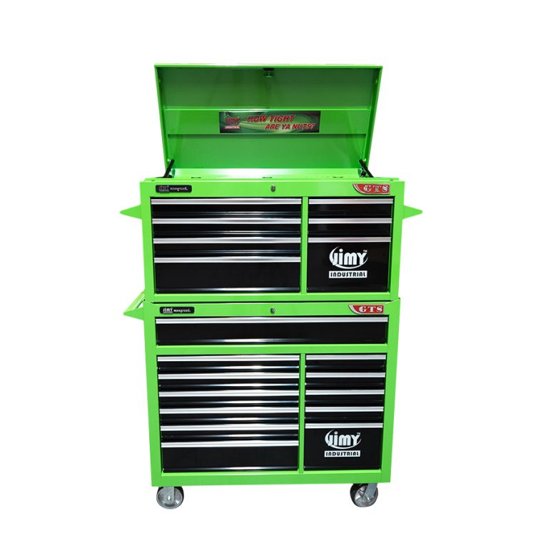 Jimy tool boxes are built to last with a tough industrial powder coating, 1.0mm thick steel, fully lockable with a rear internal locking system, dual gas strut system for lid & ball bearing slide drawers with twin slides on the deeper drawers.