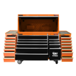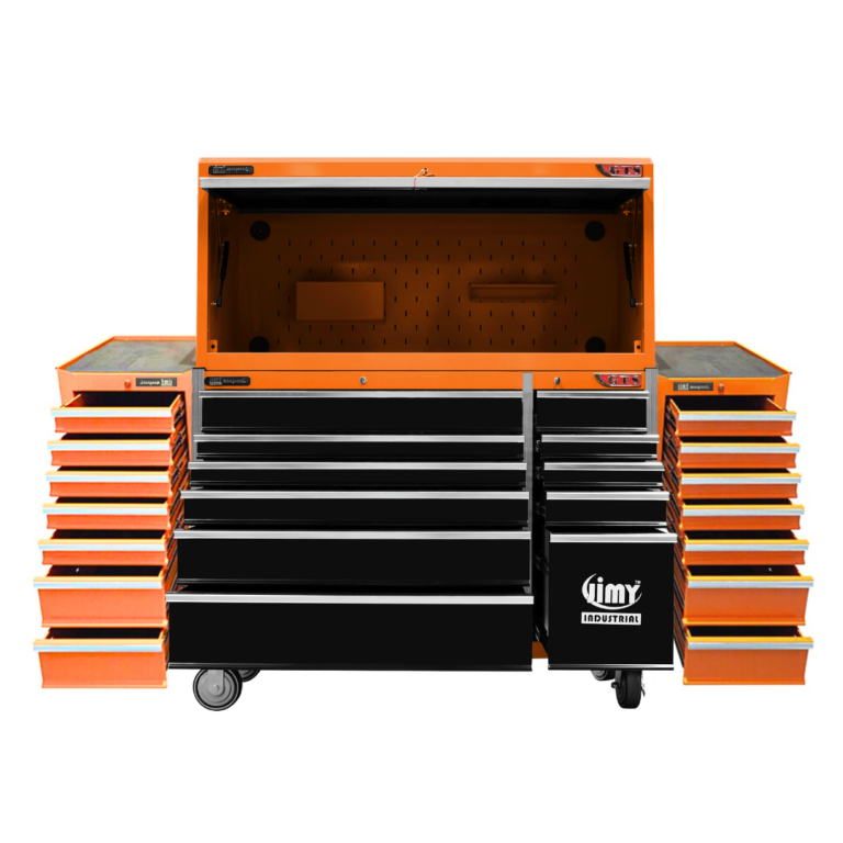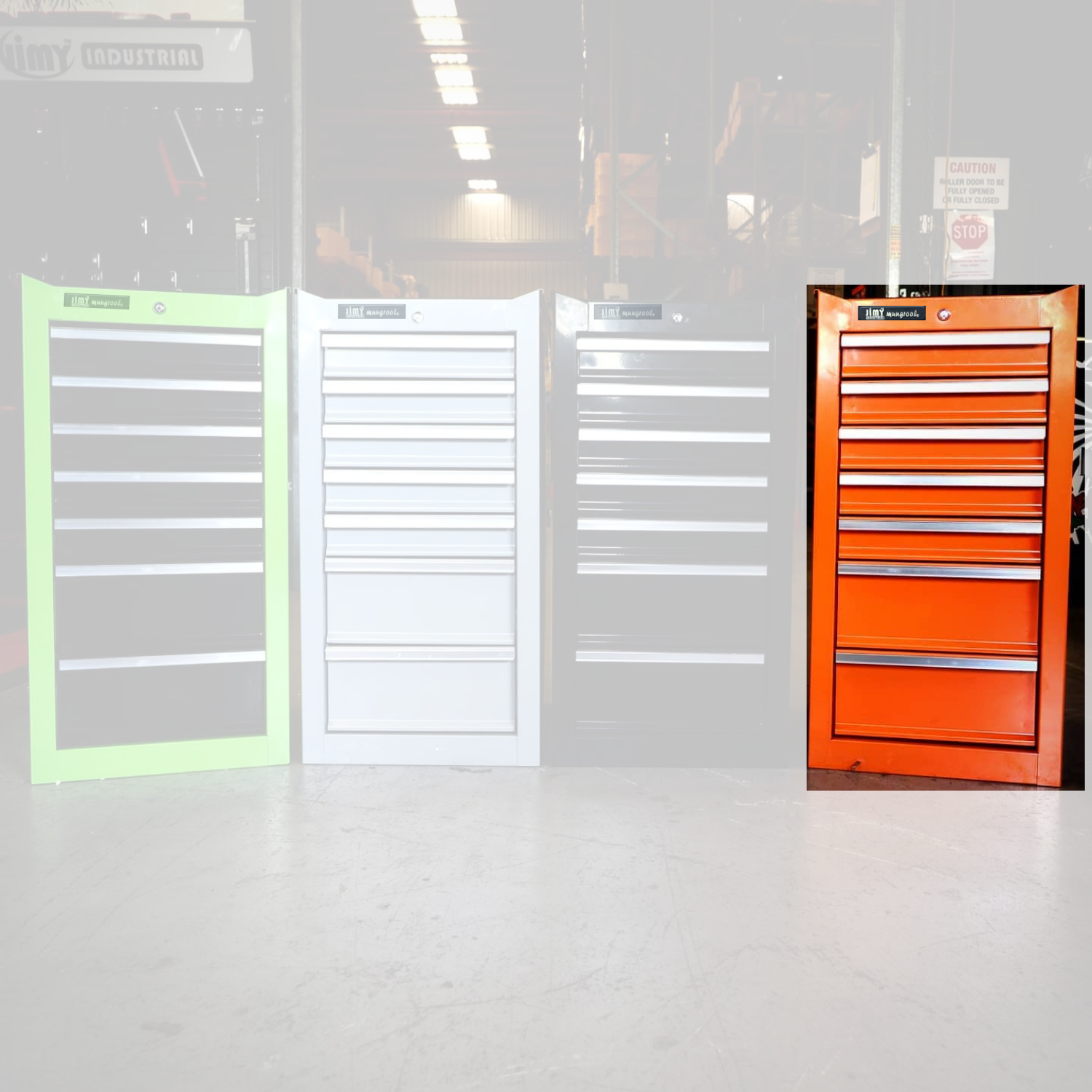 Jimy tool boxes are built to last! Tough industrial powder coating, 1.2mm gauge steel thickness, fully lockable & ball bearing slide rails on the drawers with twin slide rails on the deeper drawers.