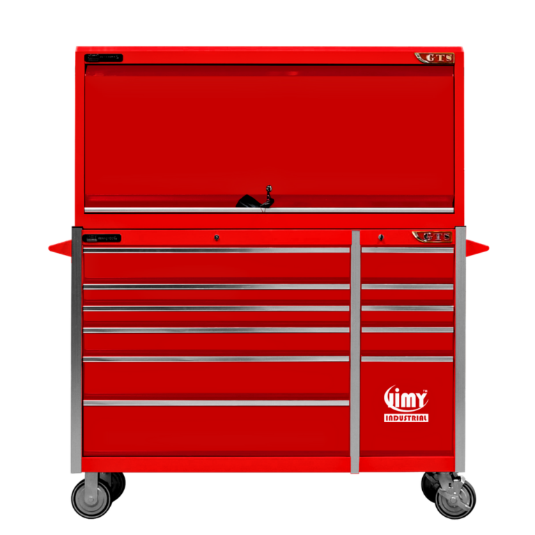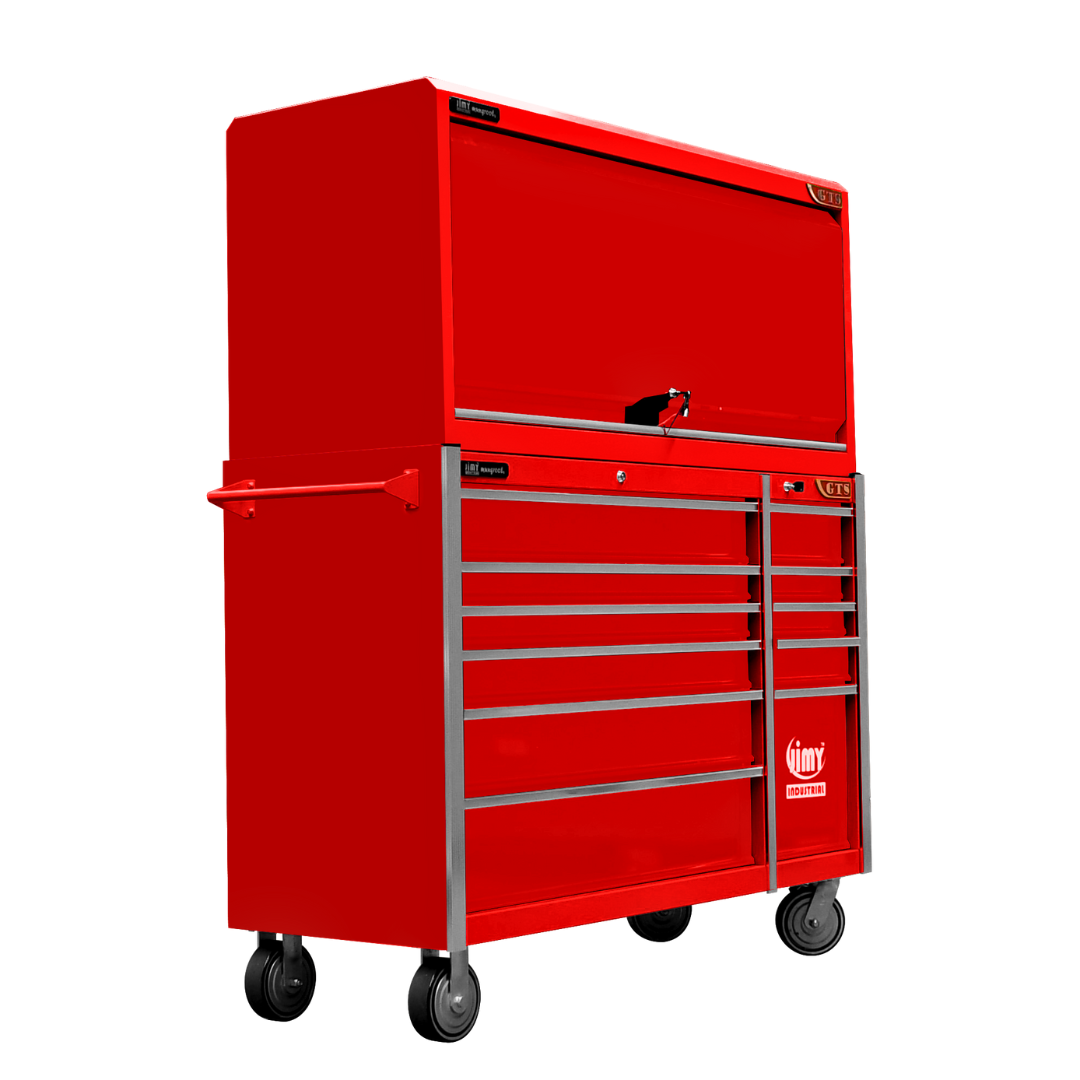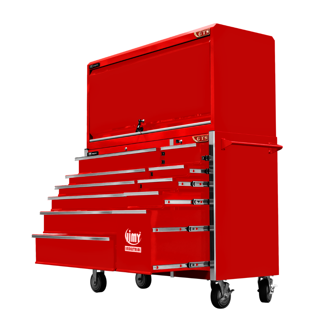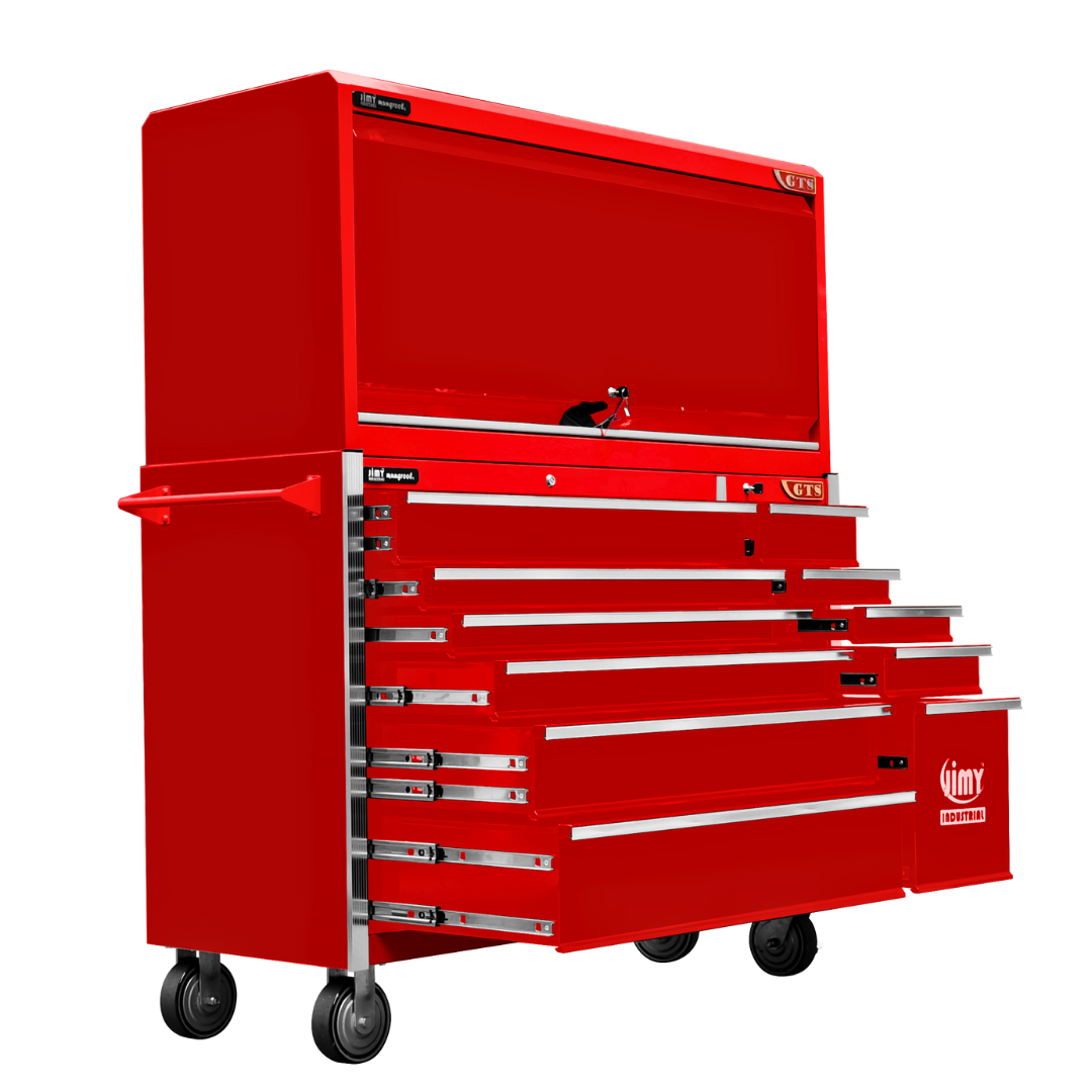 Jimy tool boxes are career spanning and built to last! Jimy tool boxes are fully modular to offer a number of storage combinations to fit your needs. With the extra deep 500mm drawers our 56” roller cabinet and bulky bench space, screwdriver holder, can organizer and a back panel pegboard featured in the hutch expands your storage capabilities. It features 11 drawers with full-width drawer handles, pre-cut drawer liners and a single integrated barrel lock. Durable full extension ball bearings and a tough power coated finish make this storage a perfect fit for your home garage or commercial workshop.