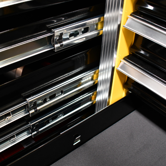 Jimy tool boxes are career spanning and built to last! Jimy tool boxes are fully modular to offer a number of storage combinations to fit your needs. With the extra deep 500mm drawers our 56” roller cabinet expands your storage capabilities and a massive 1250 kgs in weight load capacity. It features 11 drawers with full-width drawer handles, pre-cut drawer liners and a single integrated barrel lock. Durable full extension ball bearings and a tough power coated finish make this storage a perfect fit for your home garage or commercial workshop.