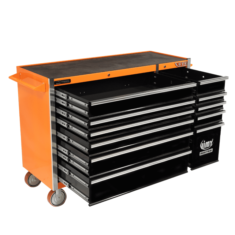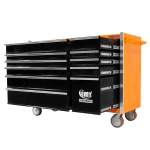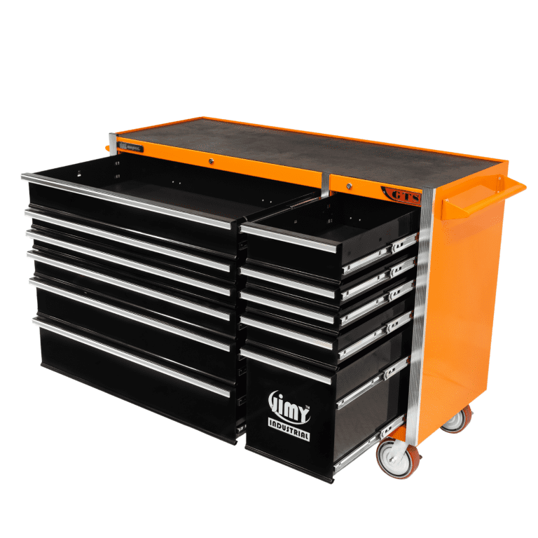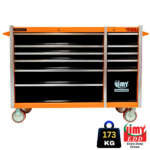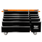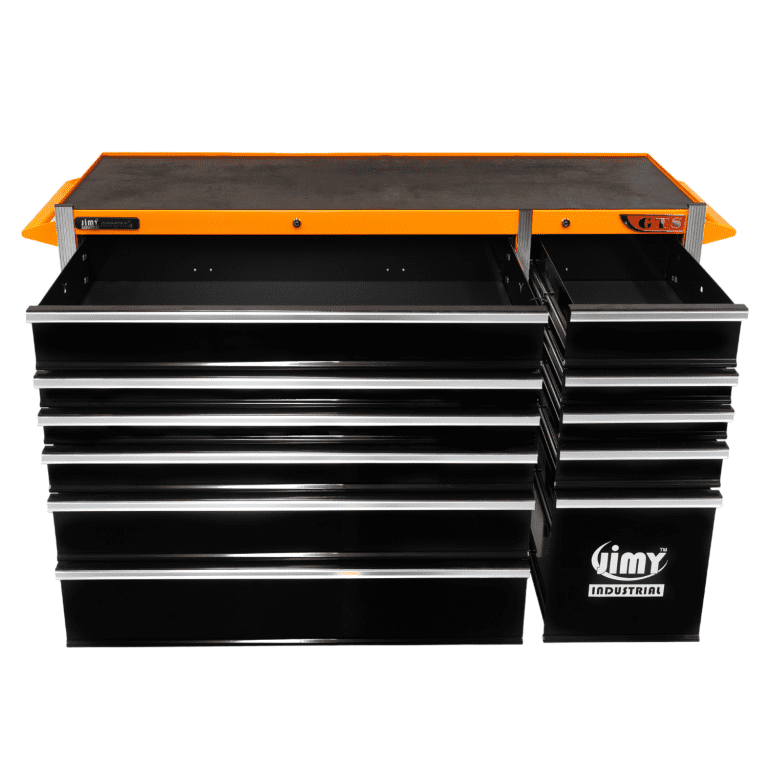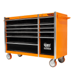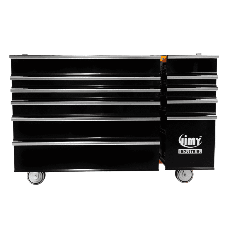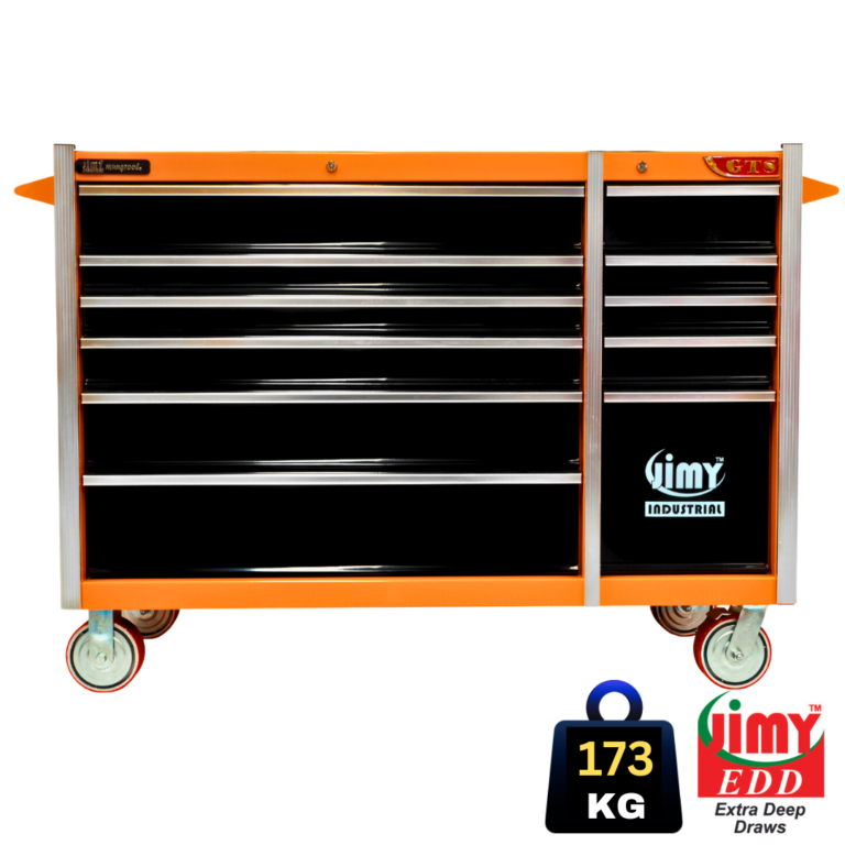 Jimy tool boxes are career spanning and built to last! Jimy tool boxes are fully modular to offer a number of storage combinations to fit your needs. With the extra deep 500mm drawers our 56” roller cabinet expands your storage capabilities and a massive 1250 kgs in weight load capacity. It features 11 drawers with full-width drawer handles, pre-cut drawer liners and a single integrated barrel lock. Durable full extension ball bearings and a tough power coated finish make this storage a perfect fit for your home garage or commercial workshop.