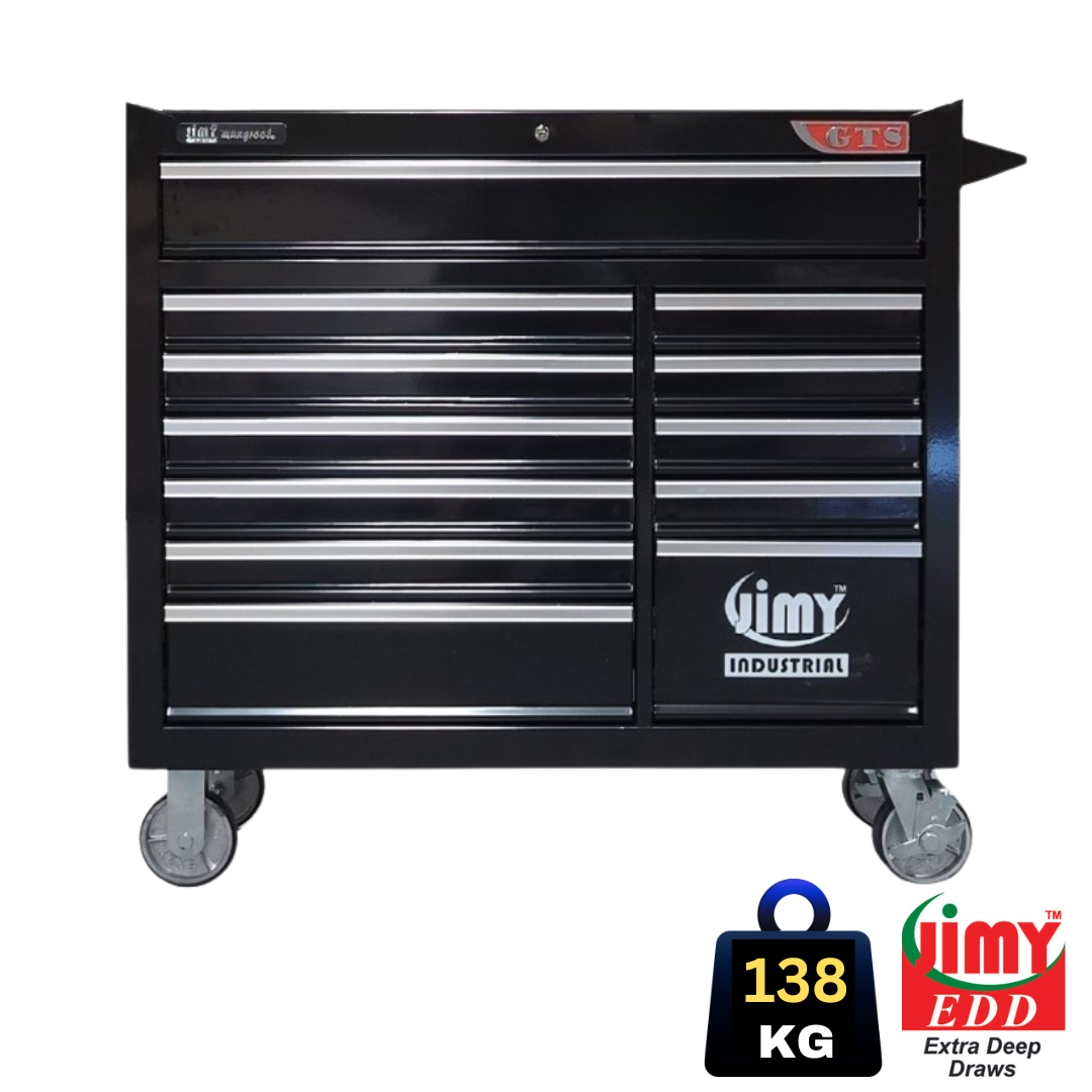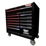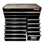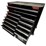 - 12 drawers for easy organisation of hand tools and everything else you need. The bottom right hand drawer is an extra large compartment for storage on bulky and heavy items such as larger power tools etc. Drawers are easily removable.